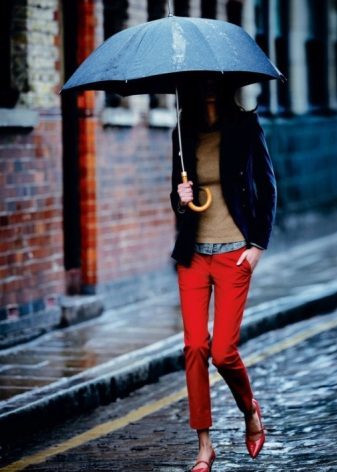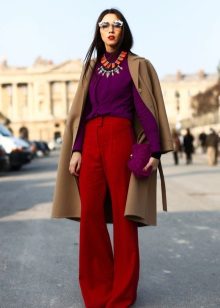 Red color is always in the spotlight. He is bright, catchy, memorable. This is a classic of the genre - like black, red is always in trend. Therefore, the woman who chose the red trousers has a huge responsibility for the whole image.