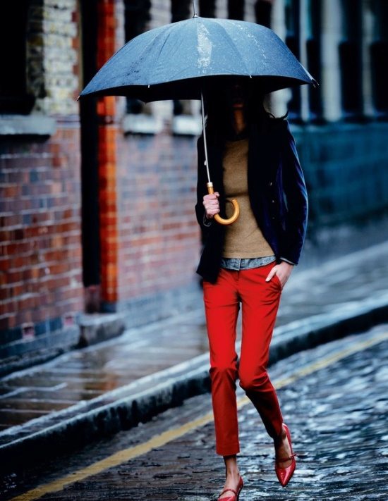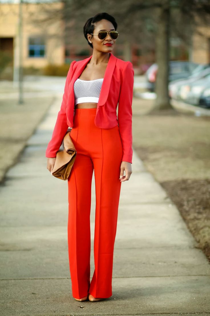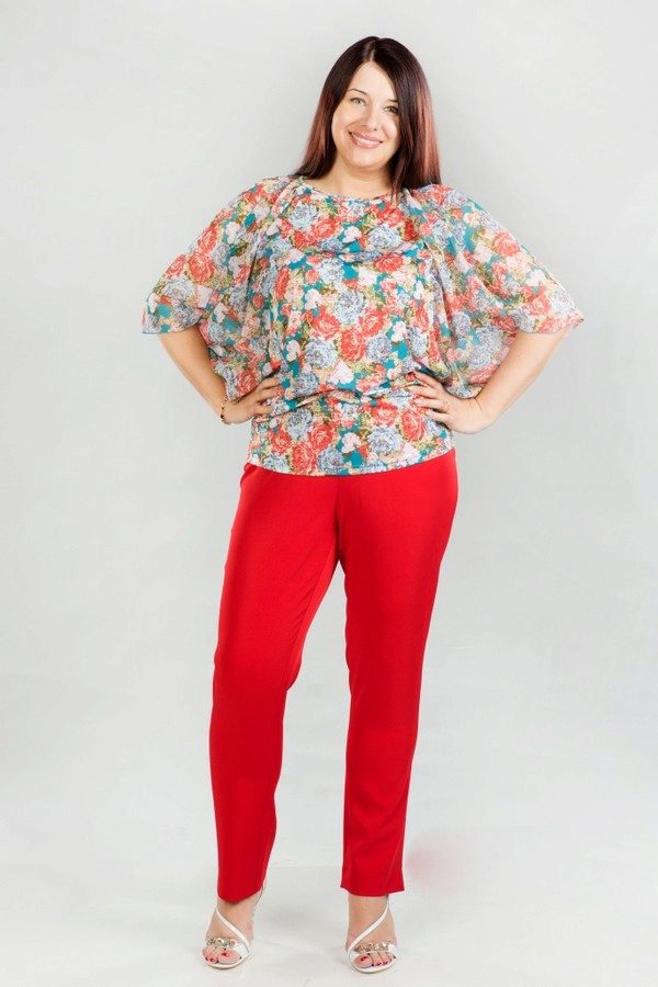 The main disadvantage of red - it is full. So for women with a pear type (narrow waist, wide hips, medium-sized breasts), it’s better to give up red pants and focus on other clothes of this color.