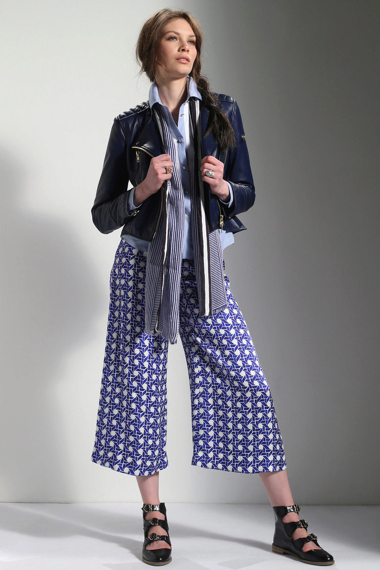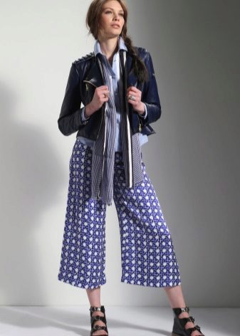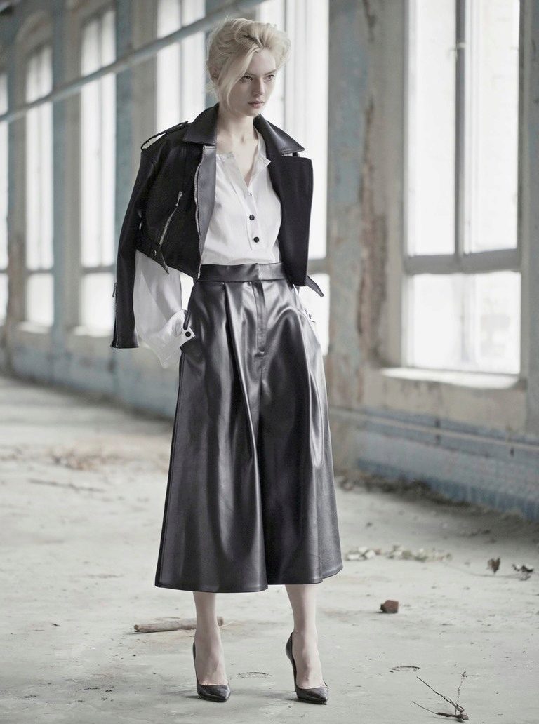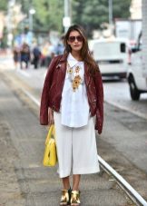 A perfect pair of culottes will be made up by blouses, shirts, fitted jackets and vests. In cool weather, you can wear a thin sweater or leather jacket over it. In the summer, culottes can be worn with various tops, including those with shorter ones.