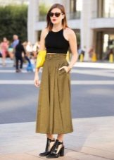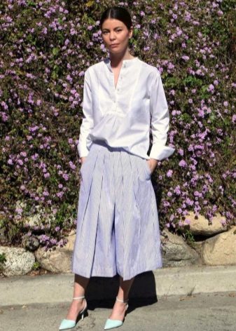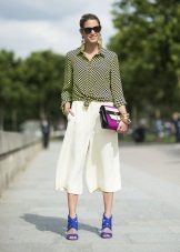 The choice of accessories along with culottes is quite simple: there are no strict requirements and restrictions, so you can experiment with your favorite shapes and colors.