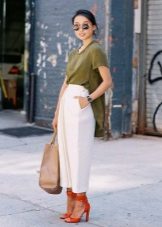 When creating a stylish image with culottes, the greatest difficulty that girls face is the choice of shoes. If you can not boast of tall, give preference only to the shoes that visually lengthens the foot.