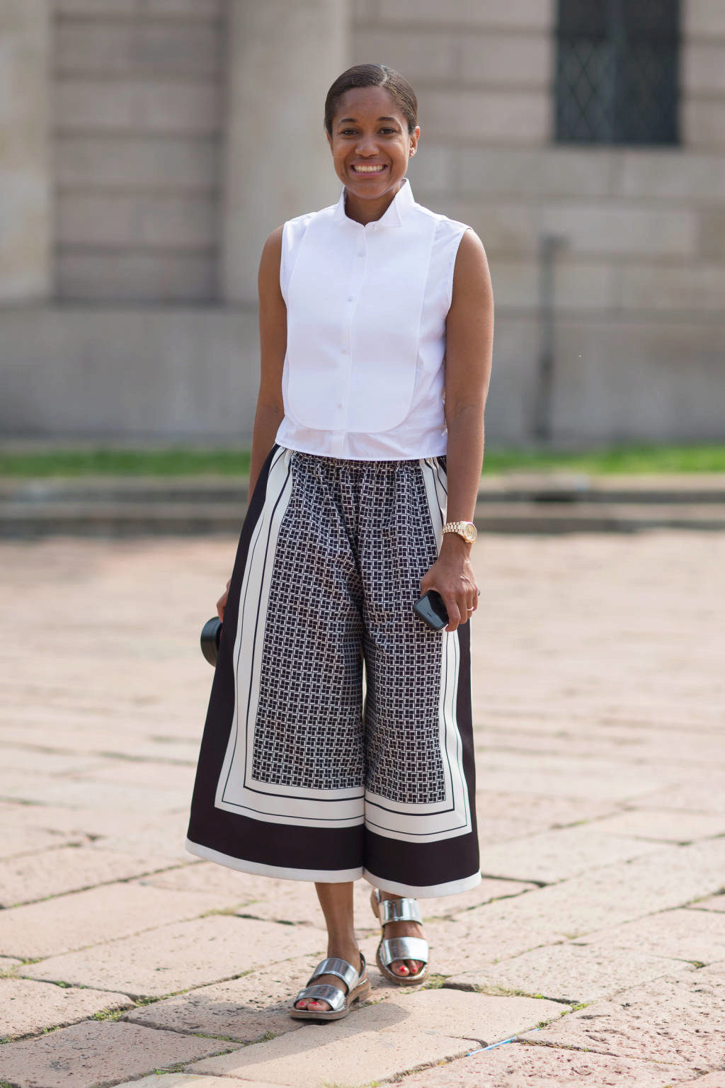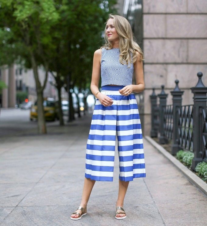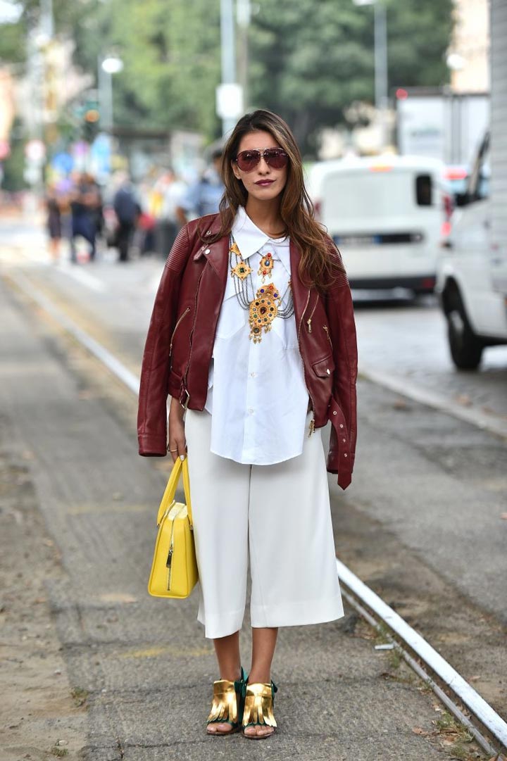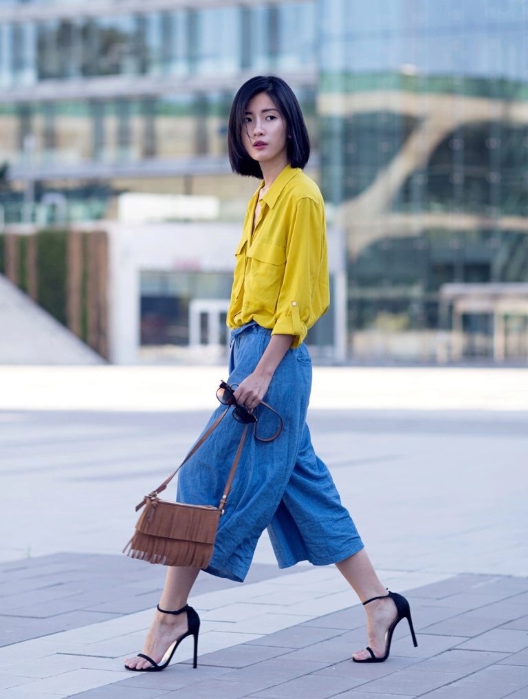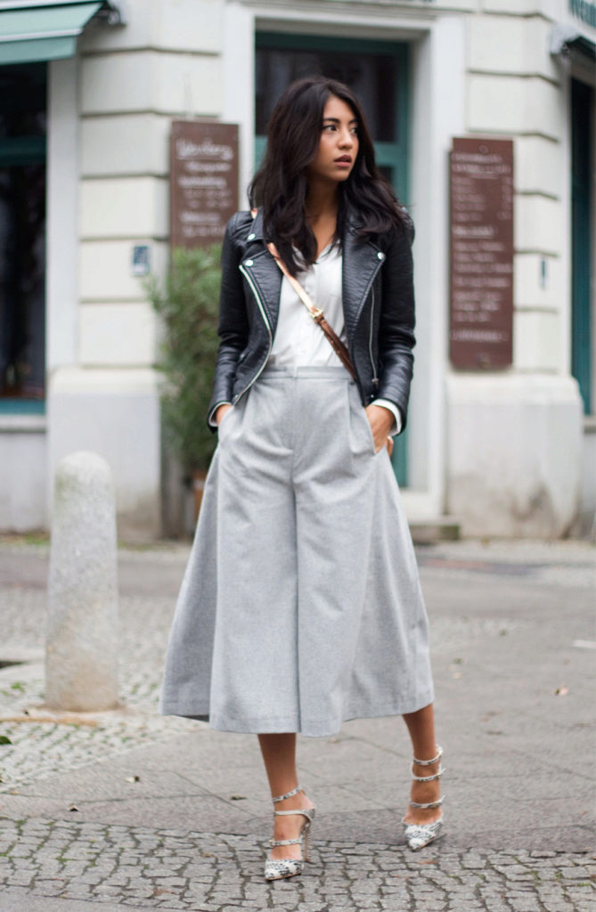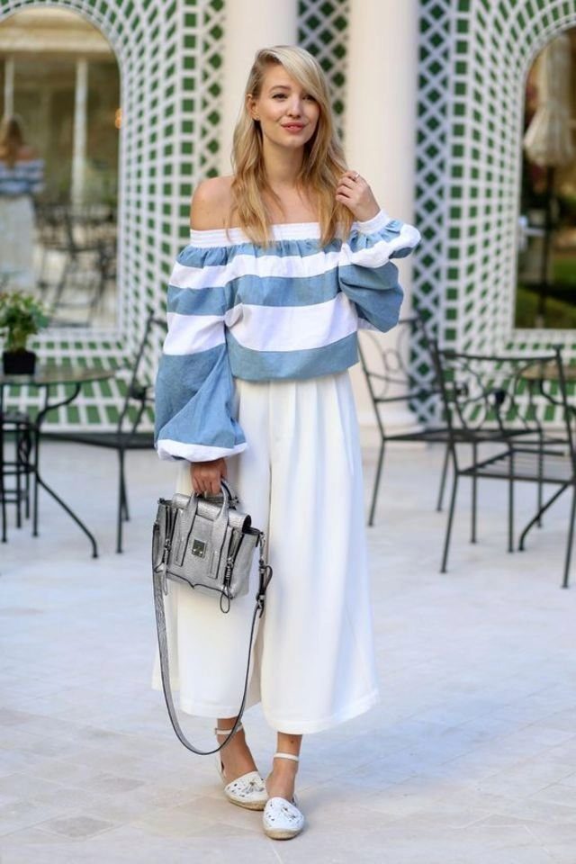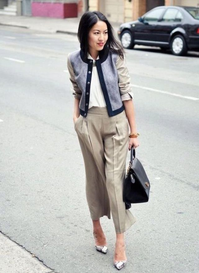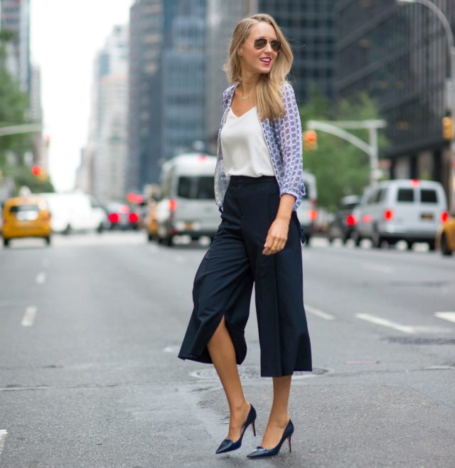 Let's look at a few successful examples of casual-style outfits that include culottes: