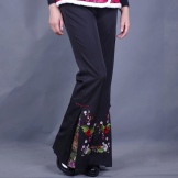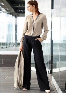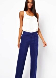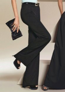 Flared pants - flared from the thigh, suitable for ladies with narrow hips. Looks like a skirt, but comfortable, like pants. Models are often supplemented with patch pockets.