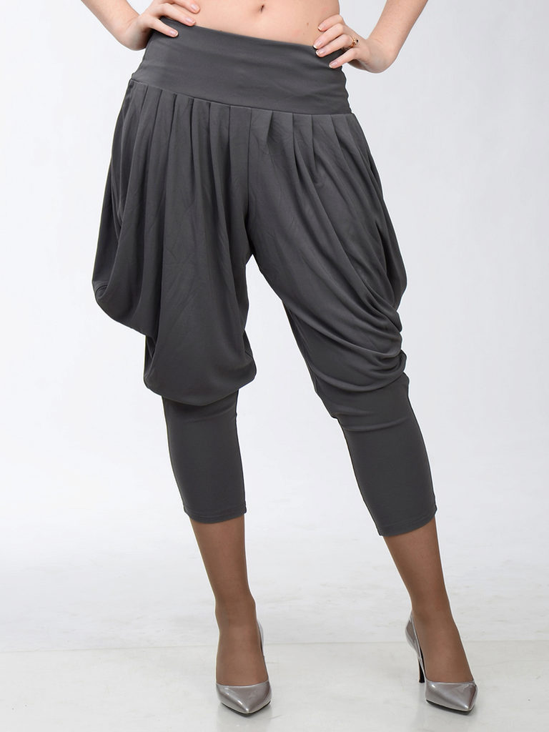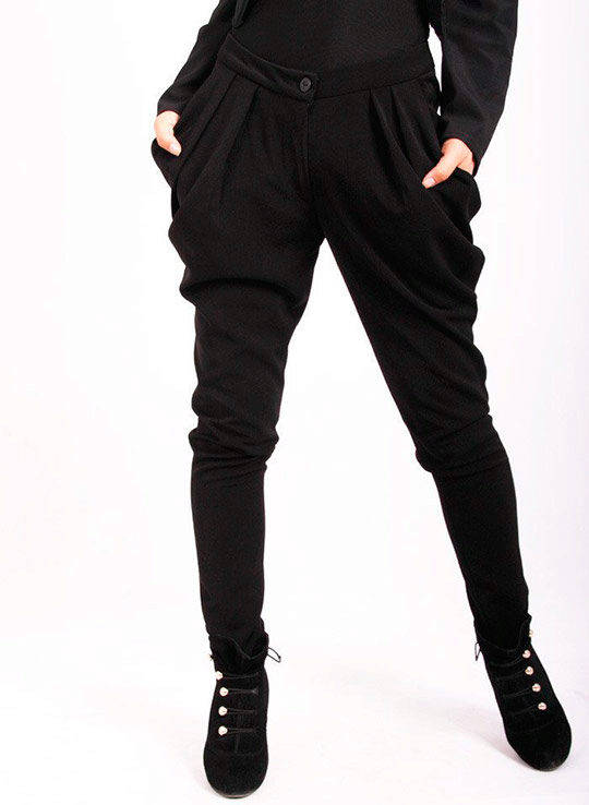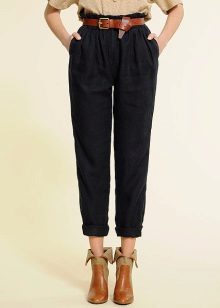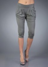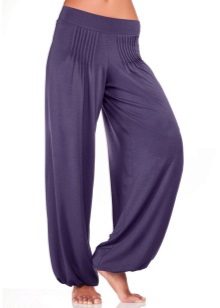 Trousers - Pumps - very wide spacious pants, ending a little lower than the middle of the calf, are gathered from the bottom with an elastic band or a cuff.
