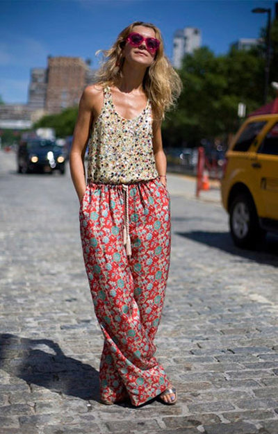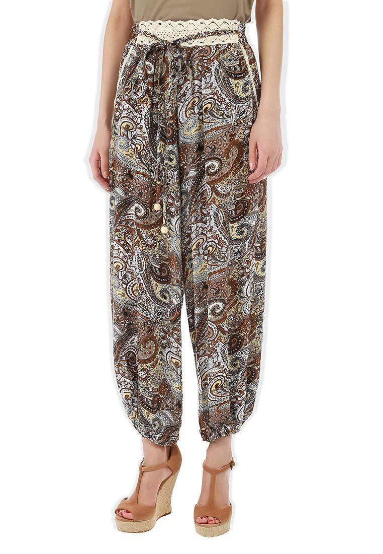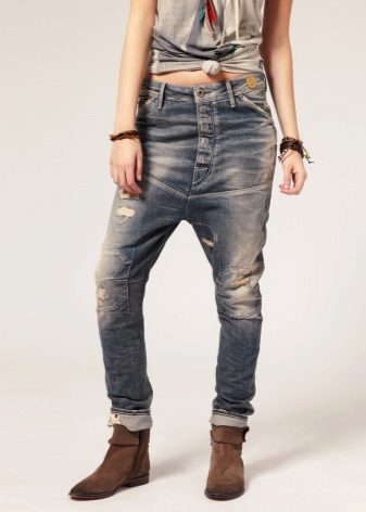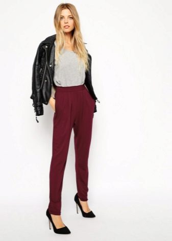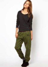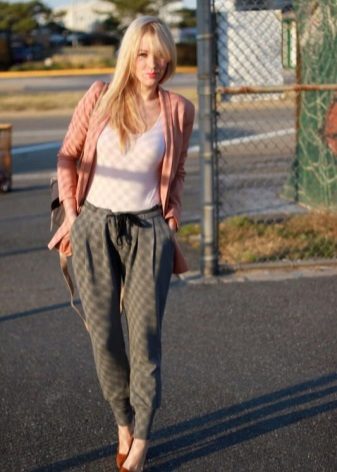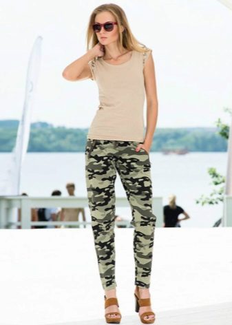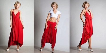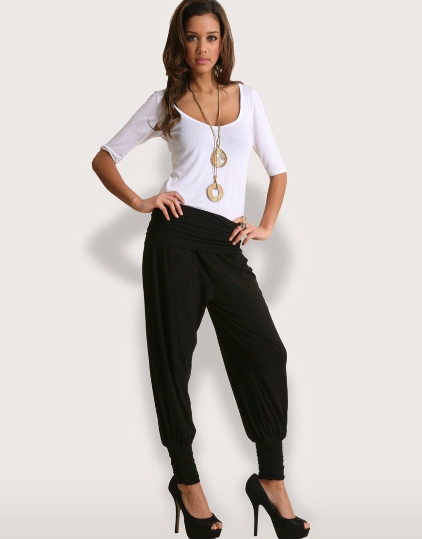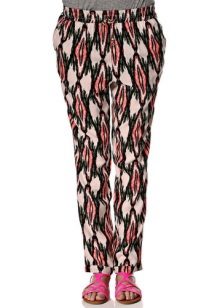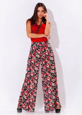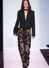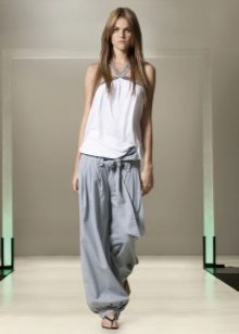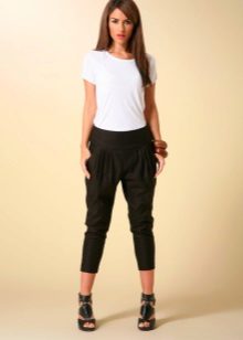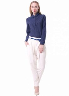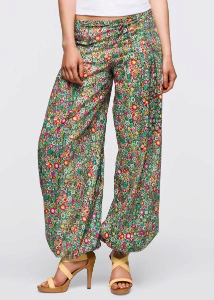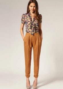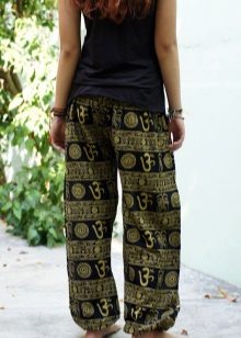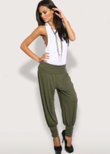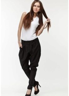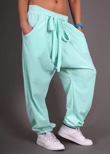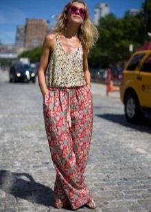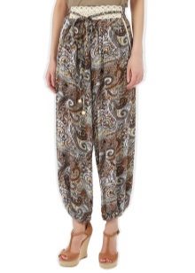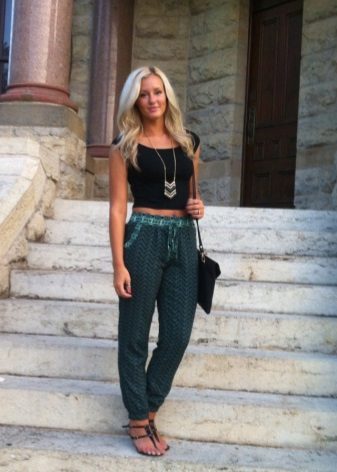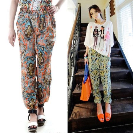"Harem" pants with a bright print will be appropriate both at home and on a walk. Due to the bright colors, the image will turn out to be unusual, but you should not overdo it in color combinations, so that the image does not turn out to be too colorful.