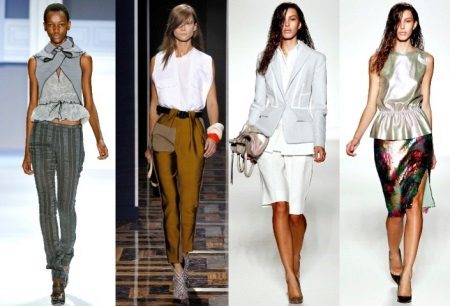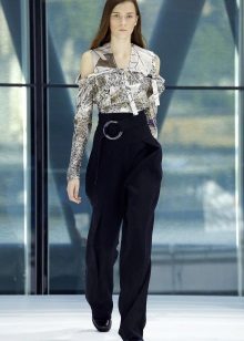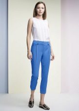 Relevant are traditional styles that resemble masculine style. The trend will be pants with a wide flare and their opposite - narrow trousers with a length of three / a quarter. No less common will be spacious models with pleats at the waist, narrowed down. The tendency to the spread of "high" waist and corset belt.
