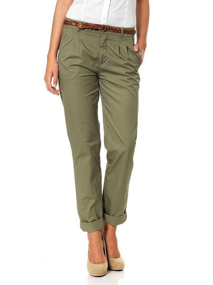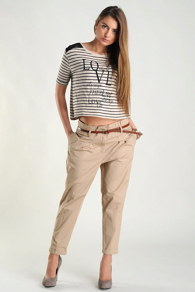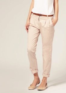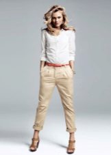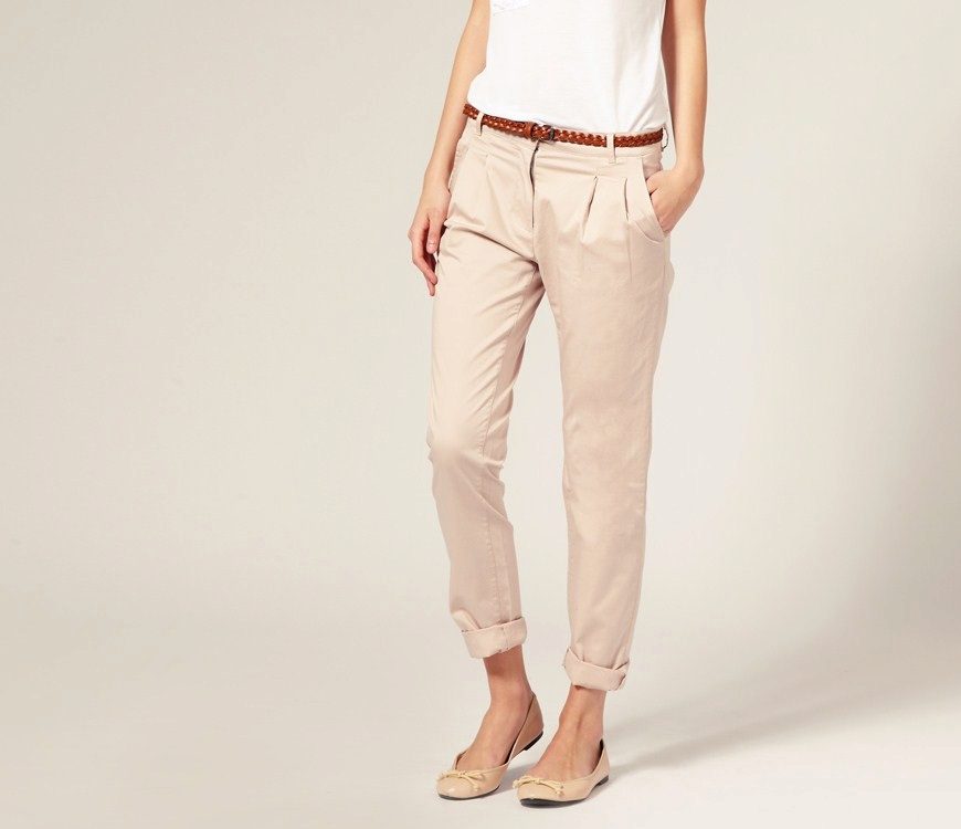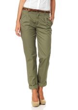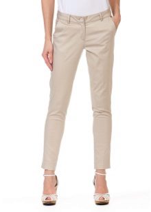Chinos (chinos, chino) - straight pants a little grubby image, usually made of cotton or flax, have folds in the coquette. Often worn with slightly tucked trouser.The basic colors are shades of beige, khaki and blue. A great alternative to jeans.