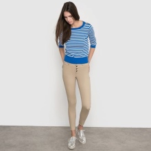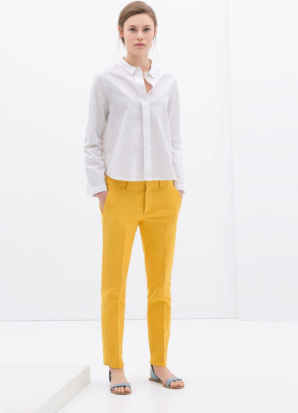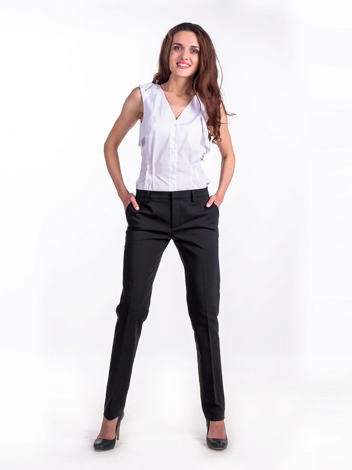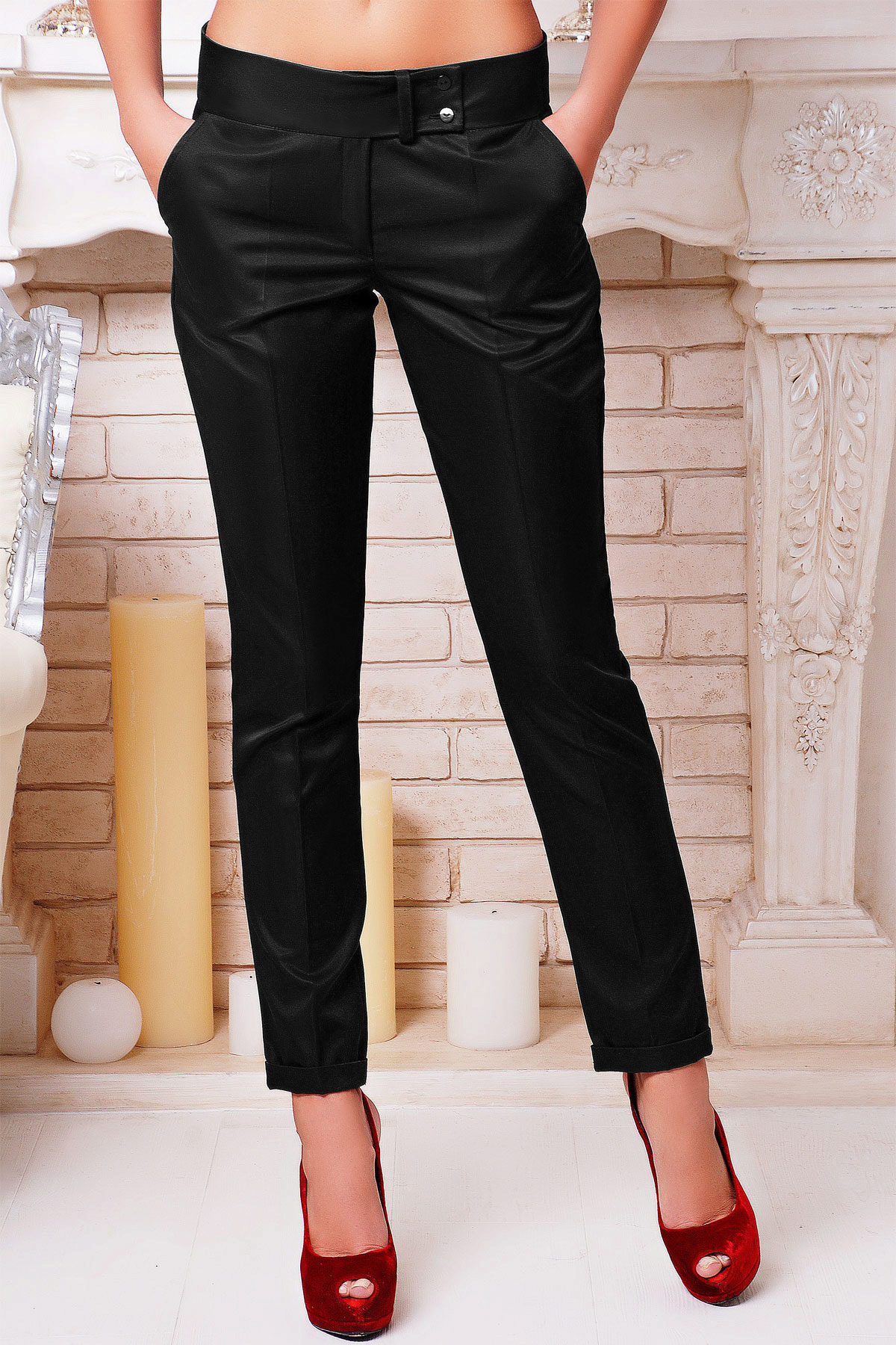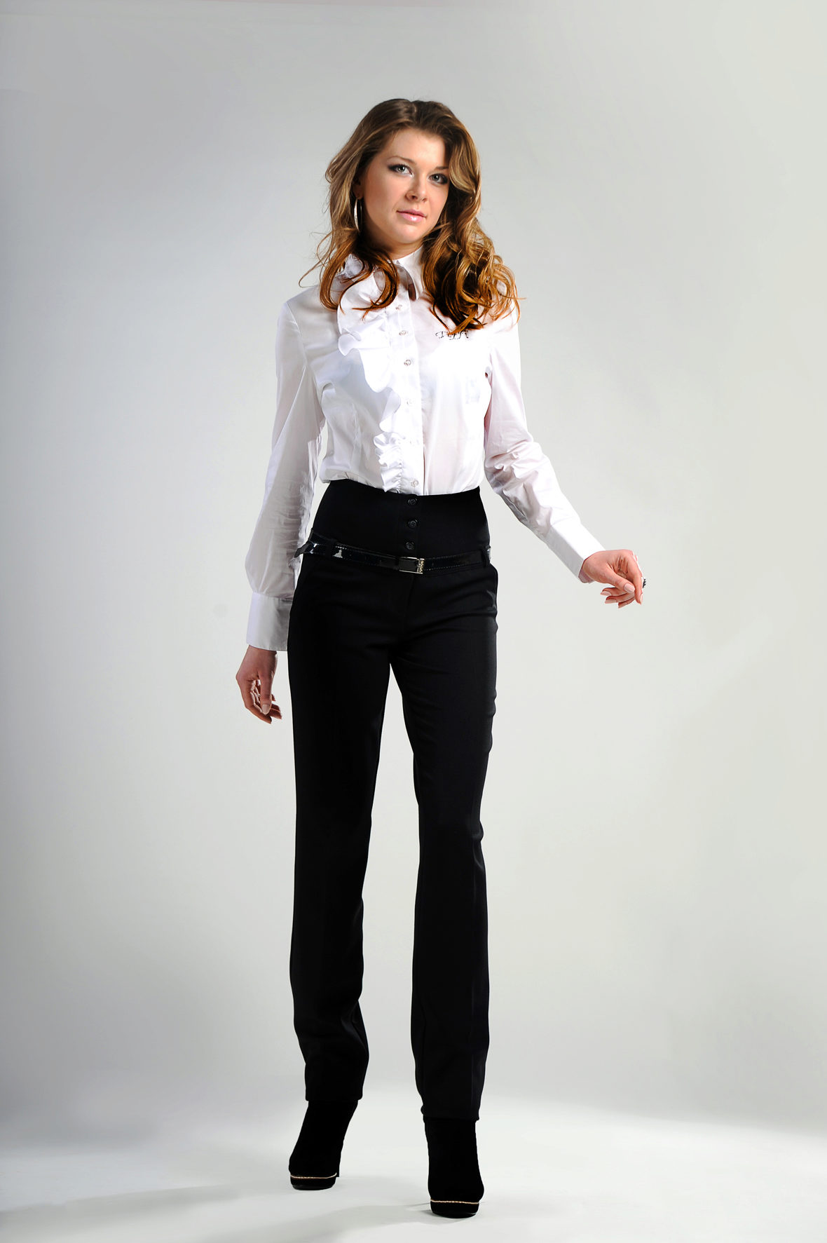 For ladies with long legs and a shortened torso, we advise you to choose trousers with a low waistline, as well as shortened models.
