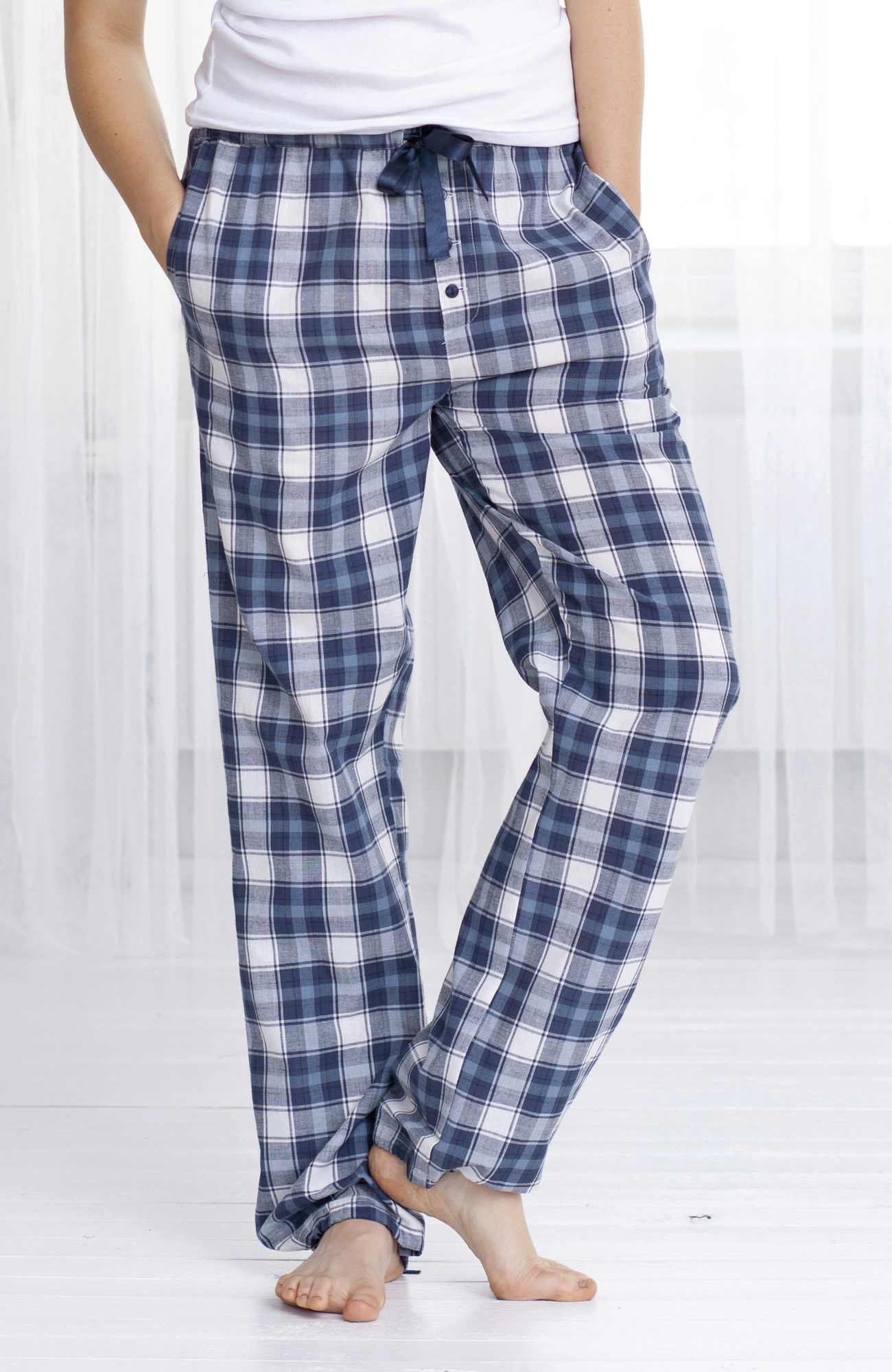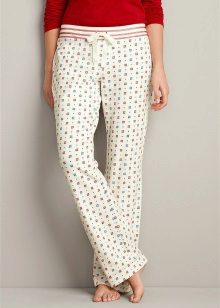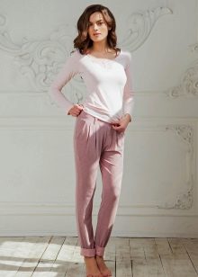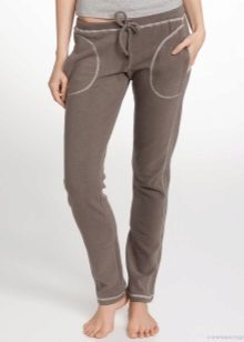 The main feature of home trousers is the lack of fasteners, only buttons or ties are permissible. Naturally, such trousers are suitable only for home furnishings, they will look somewhat strange in training or walking.