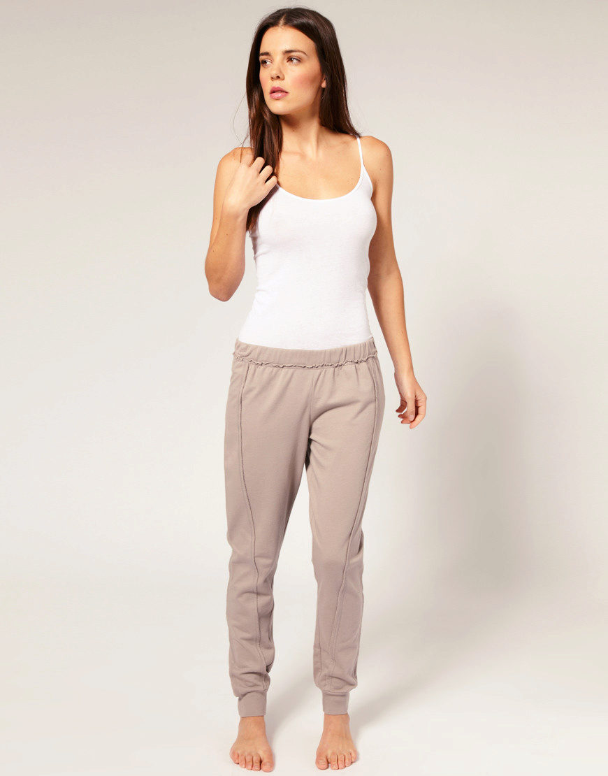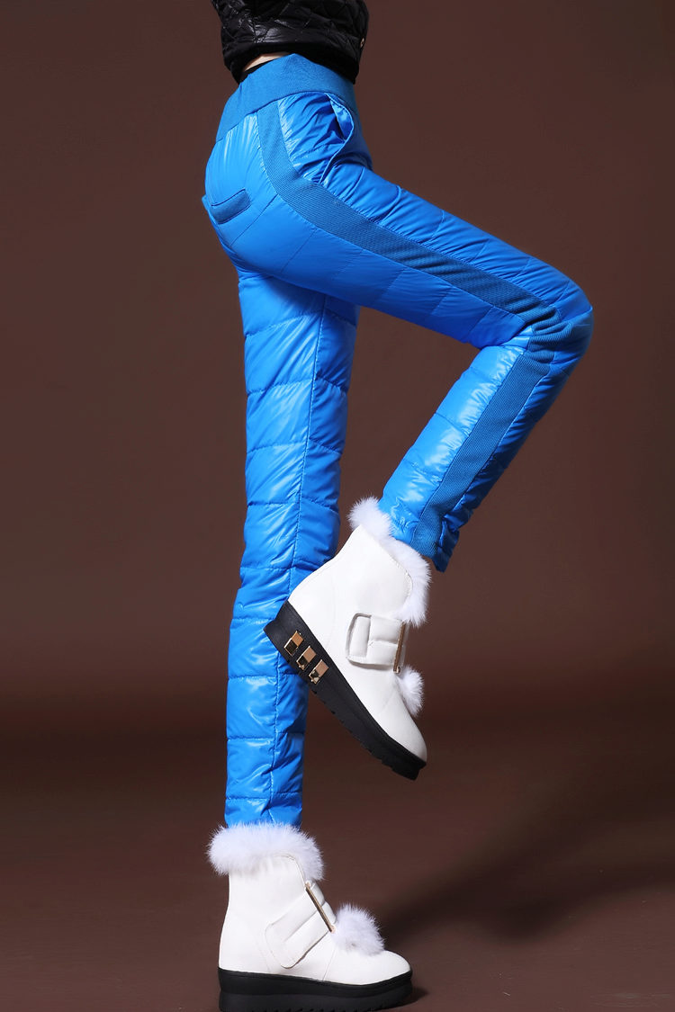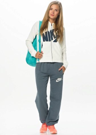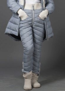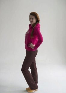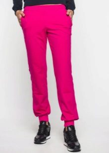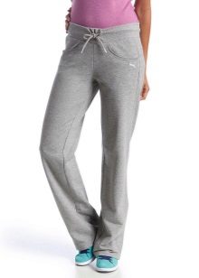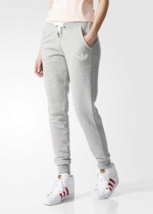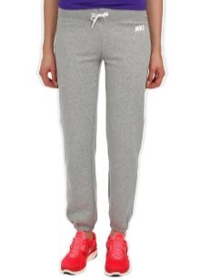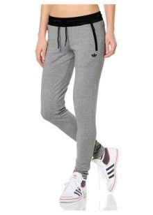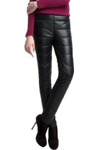 Tight sports trousers are in demand among slim ladies. Warm sweatpants can have inner bouffant, lining or padding from padding polyester or down, which will allow you to wear the product in the cold.