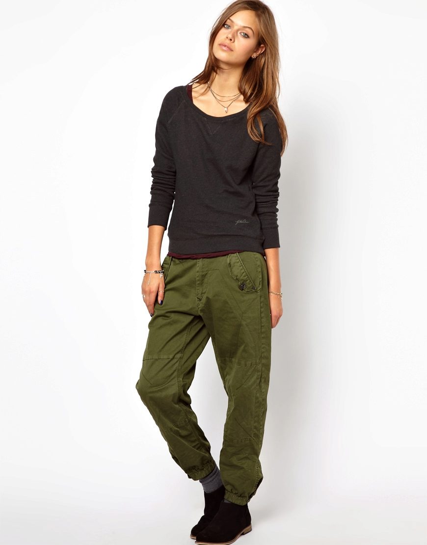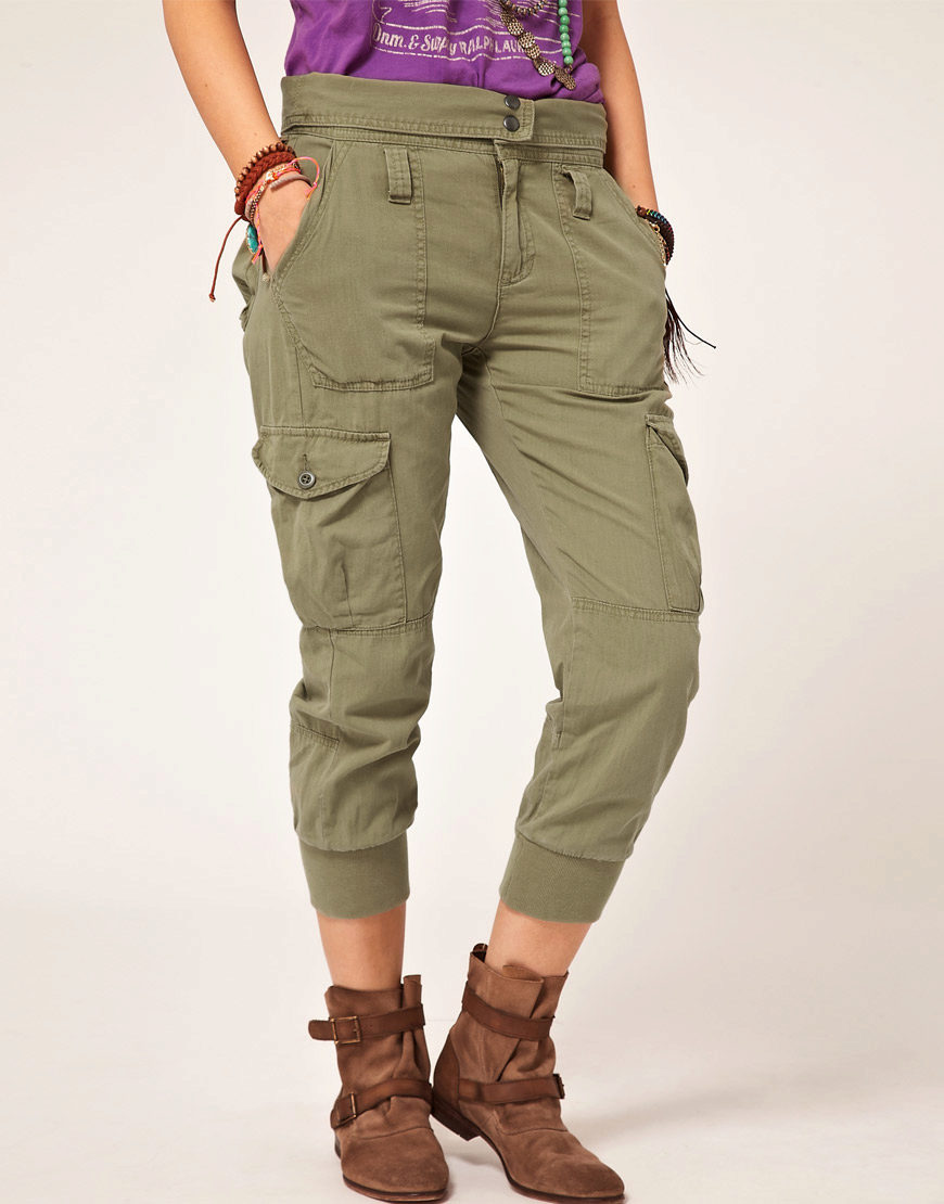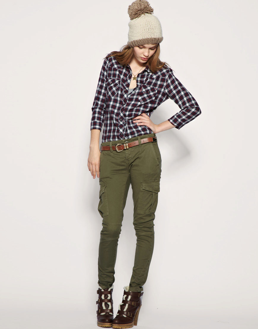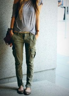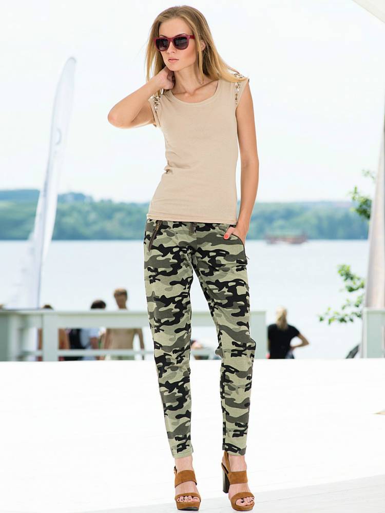 Also, pants with large pockets, flaps and loops will help in the creation of military style or safari. These are comfortable and functional clothes made from natural materials. Trousers in the style of military distinguish strict lines and straight silhouettes. The colors used are mainly brown, green and khaki.