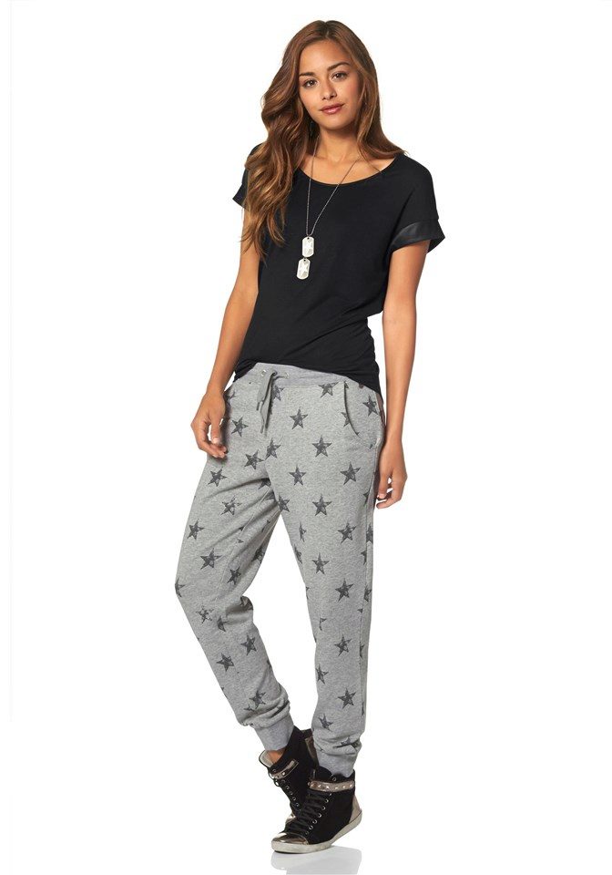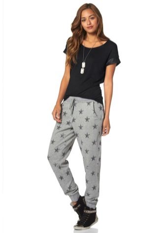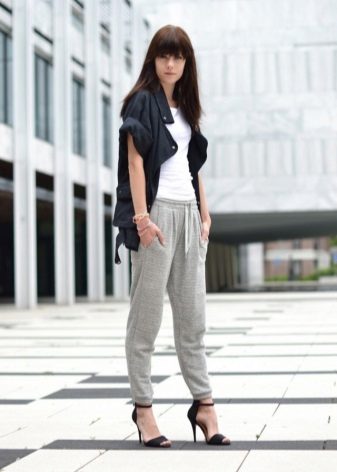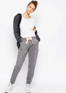 Pants in sporty style are quite comfortable, perfectly stretch and sit on the figure. Free-form sweatpants are loved by the curvaceous ladies because they conceal excess weight best.