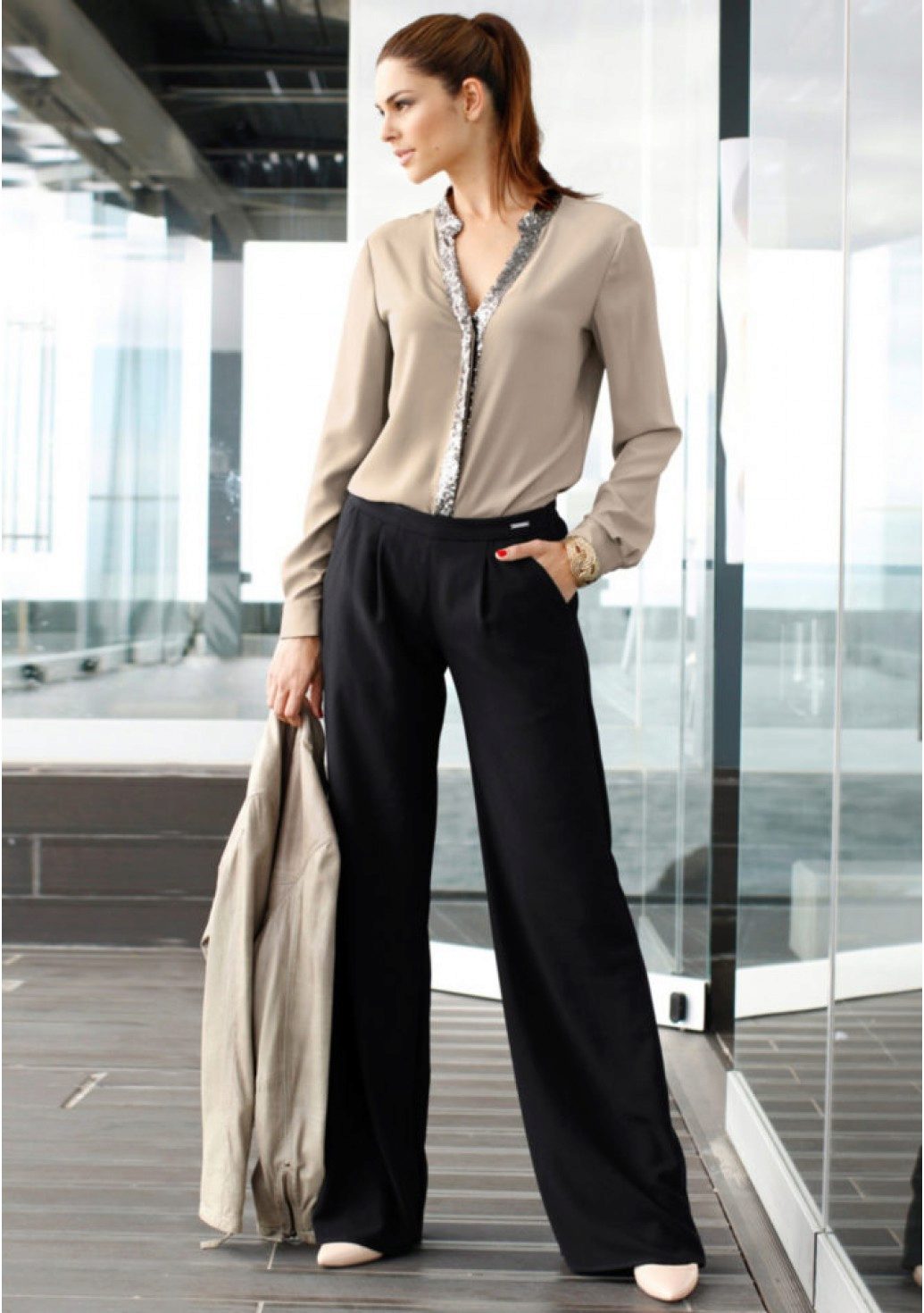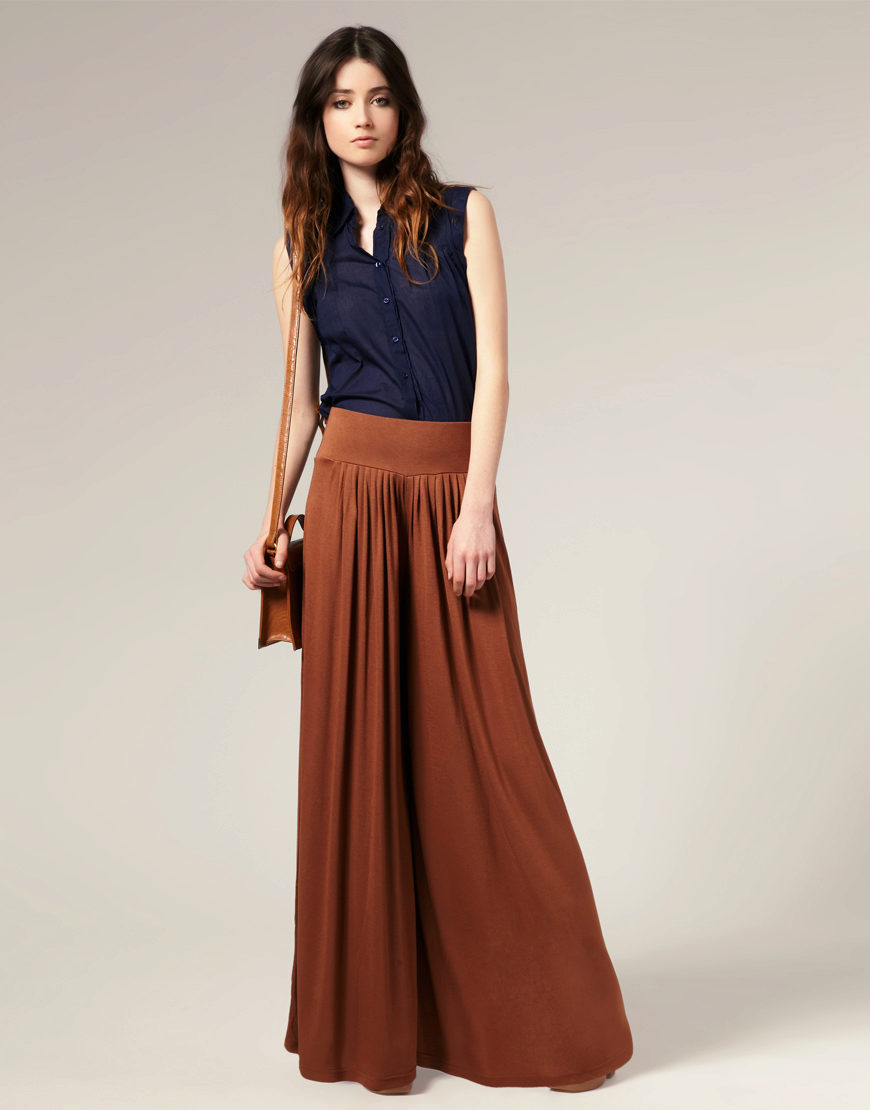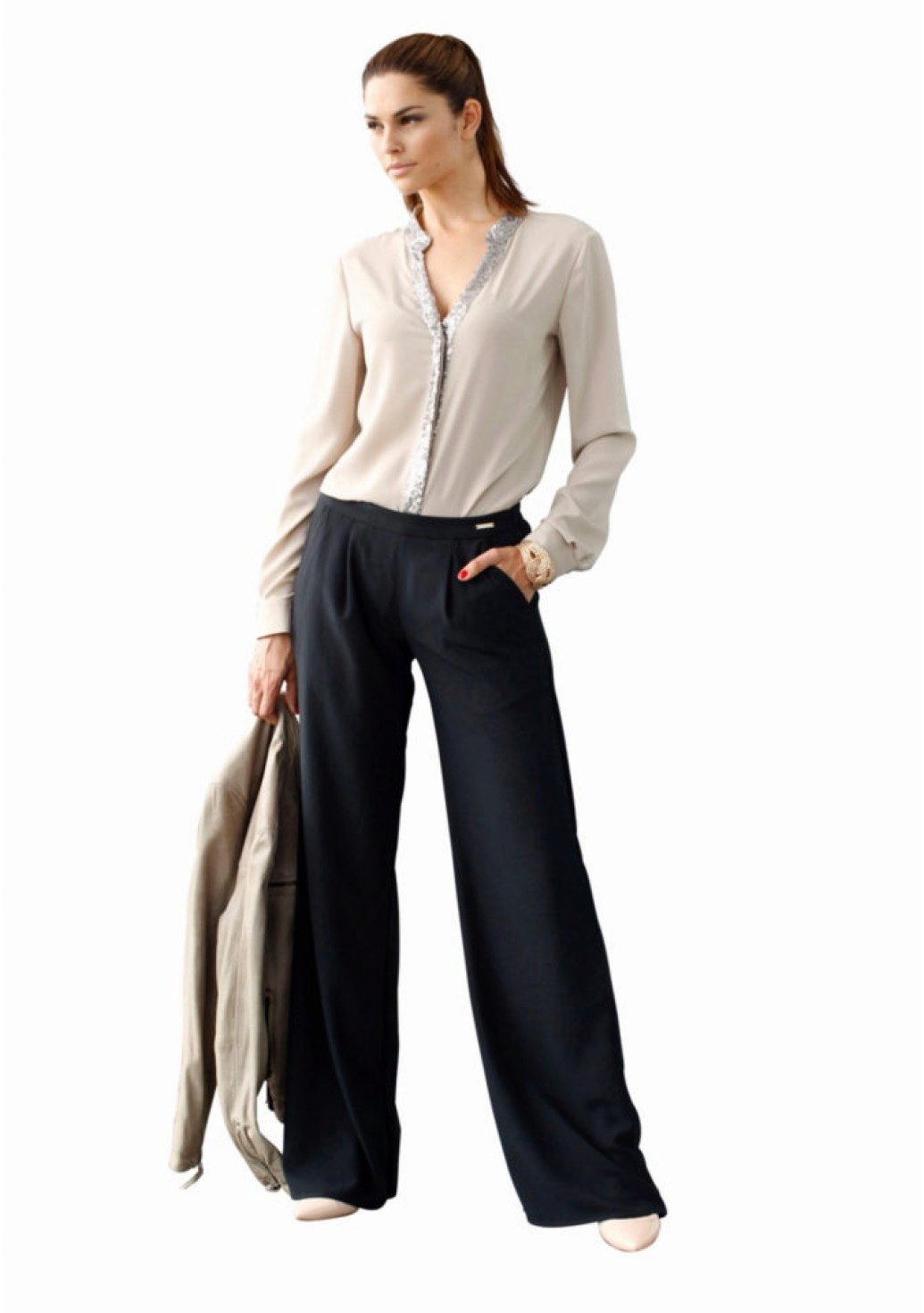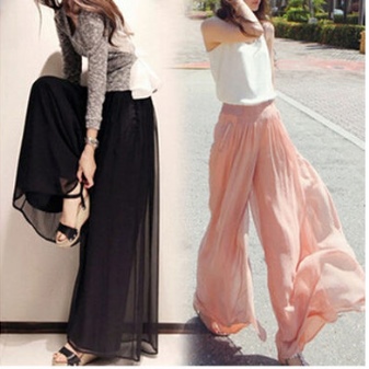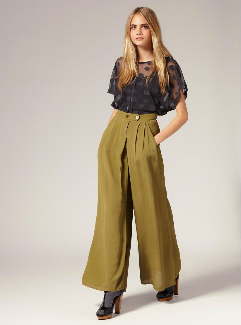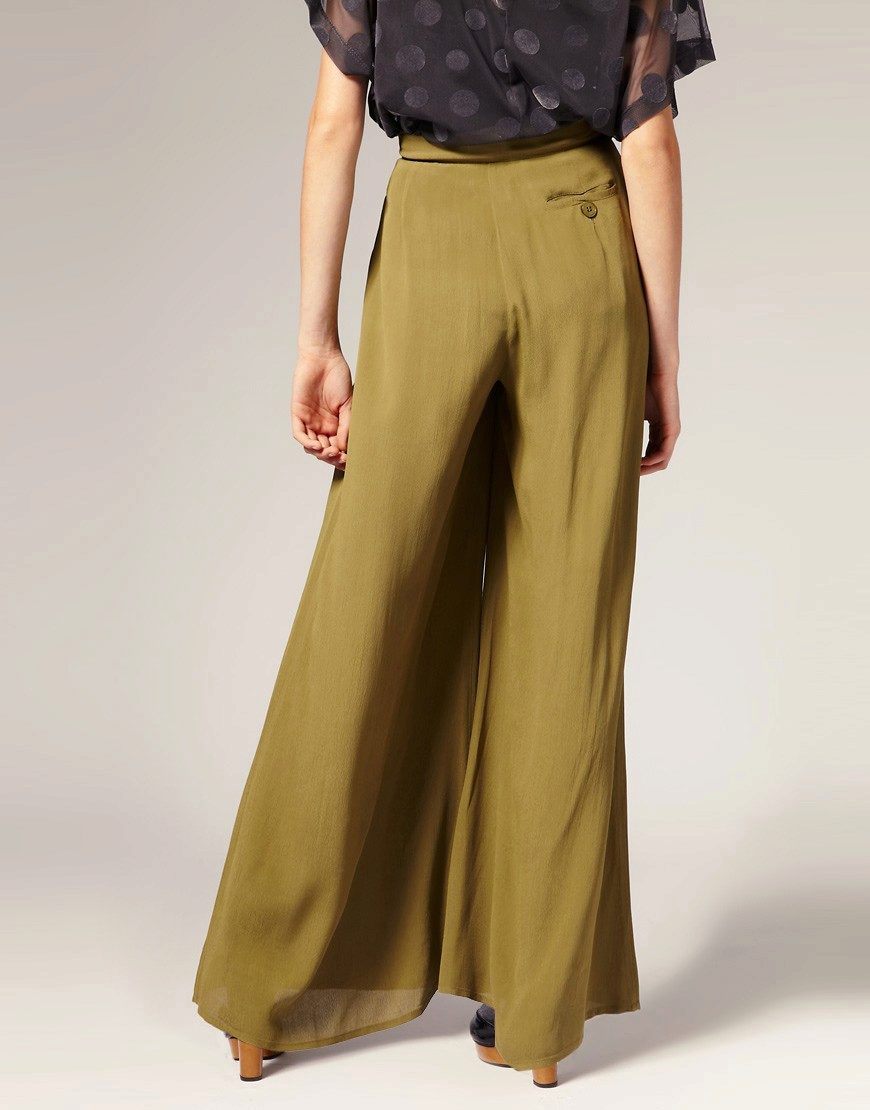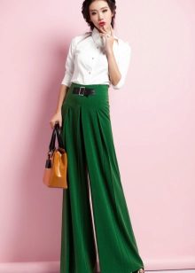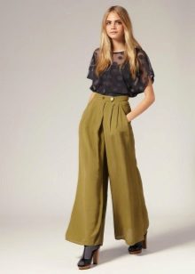 Palazzo Trousers (Palazzo Skirt) - very loose, with a high waistline, made of airy materials, expanding from the hips and falling, which causes an analogy with a skirt.
