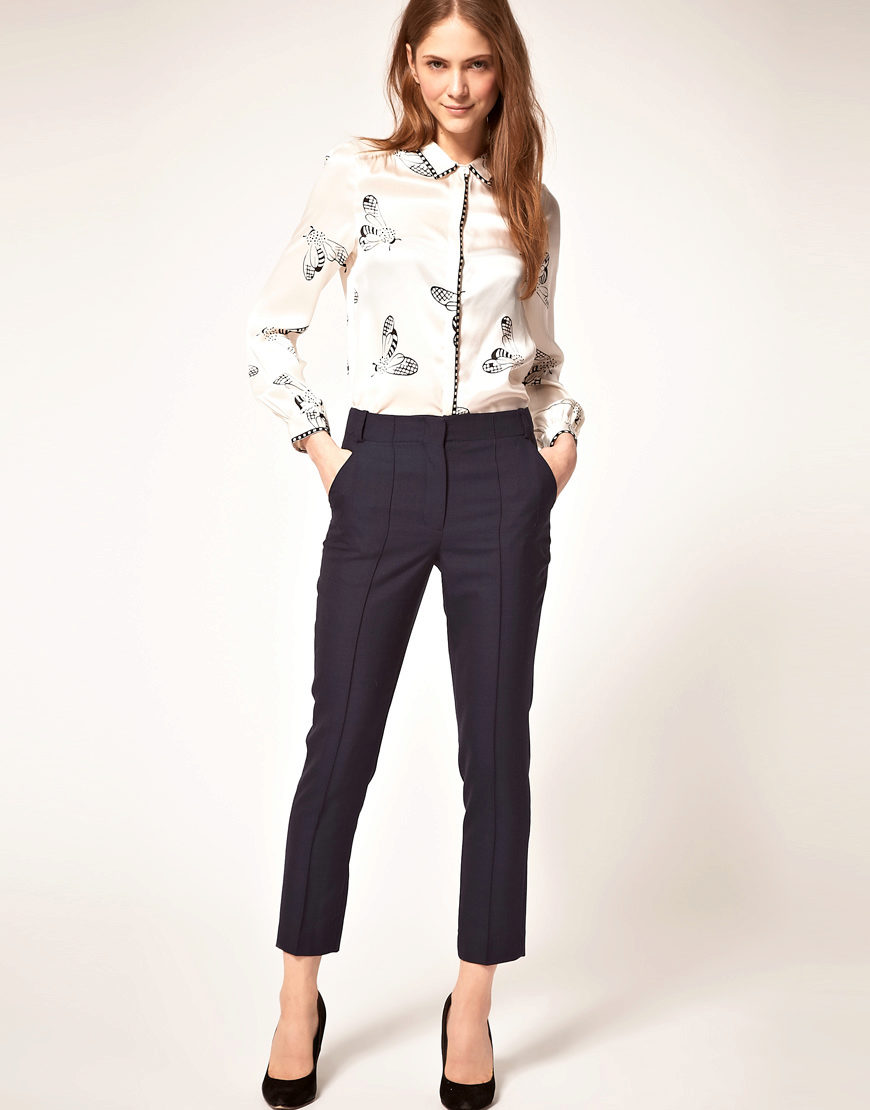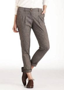Young ladies prefer narrowed pants. But they will go only to owners of slender legs.