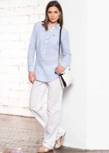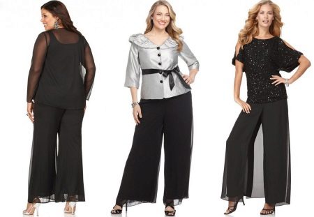 Opposite bold youth model - trousers-sails. Such a style will hide problem areas well.In this case, the top can only be slinky, or a refined outfit risks becoming like a bag.