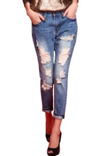 Often on the catwalks you can find straight-leg trousers, on the outer seams of which there are slits, slots with a height approximately to the middle of the calf. Also this season, fashionable image helps to support the trousers with cuffs. "Ripped" jeans are not losing ground for the past few seasons. Today you can find styles in which almost half of all the material is torn.