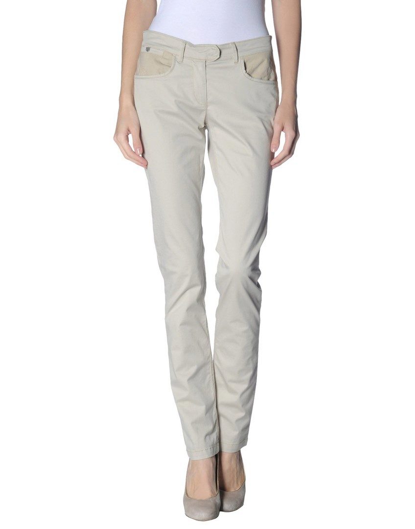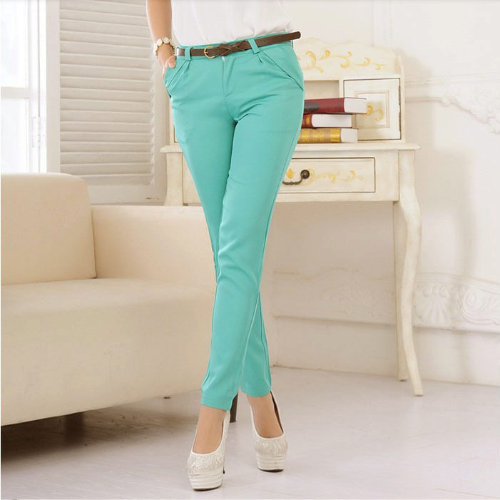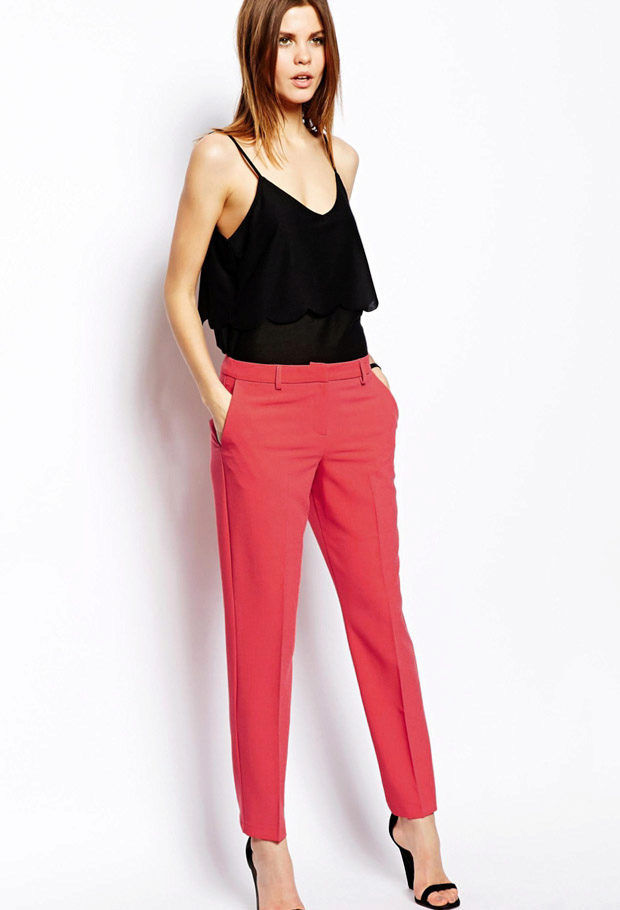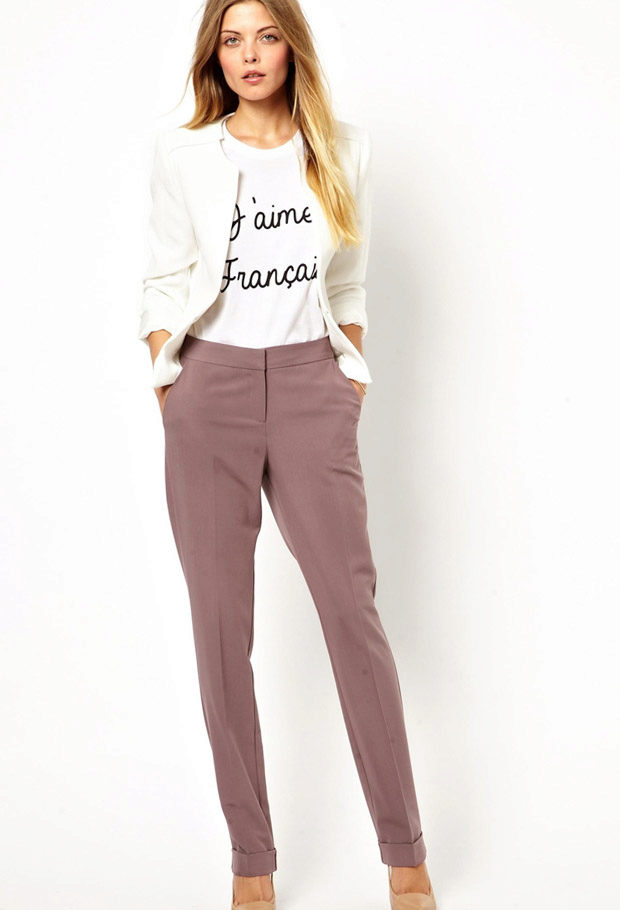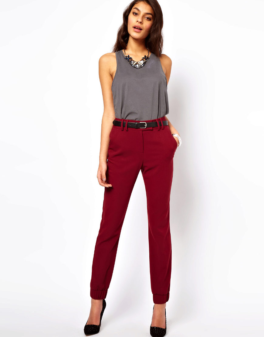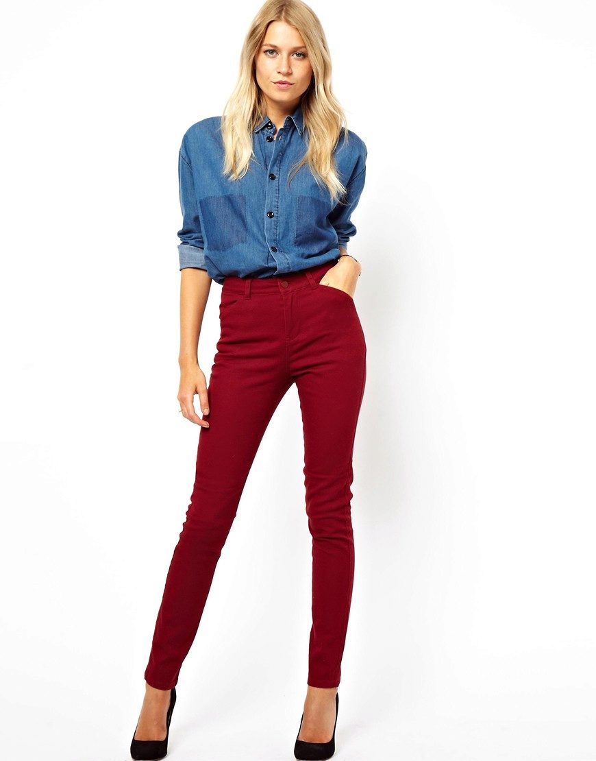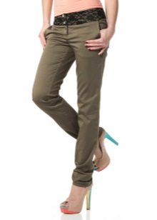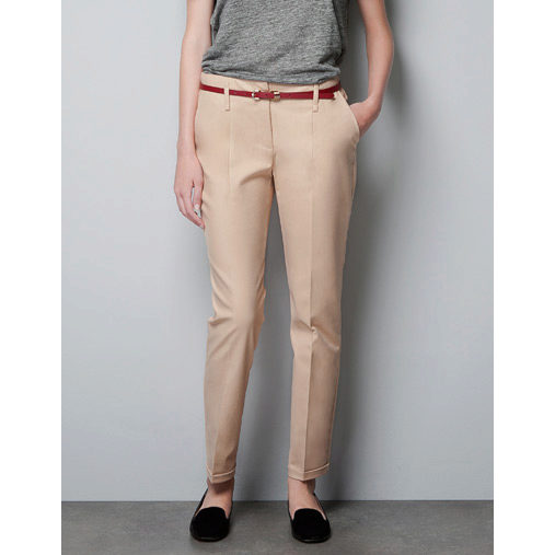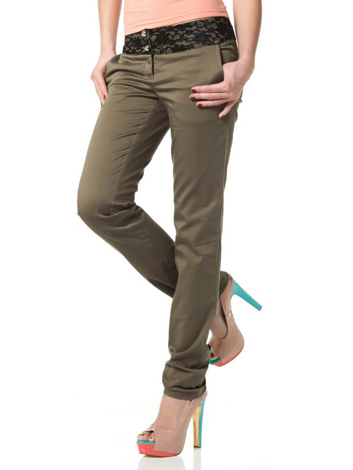 Khaki pants on any figure look amazing. Red shades are popular with slender ladies.