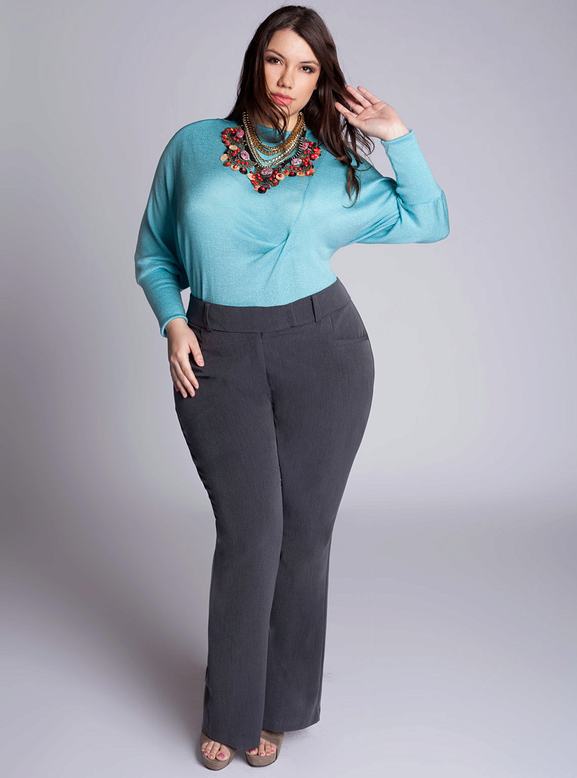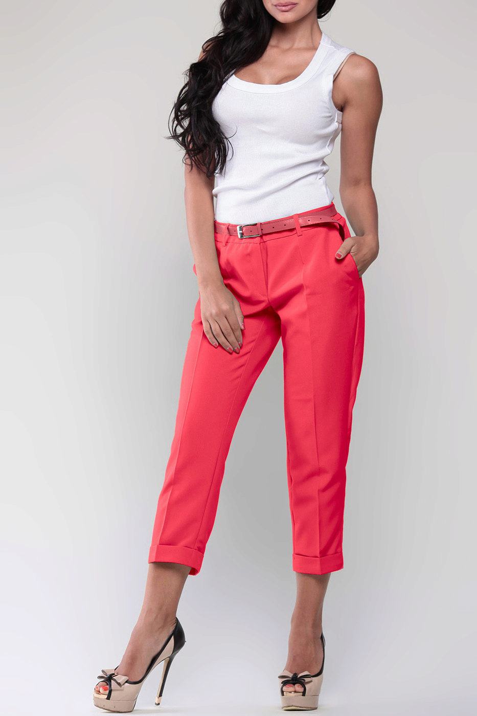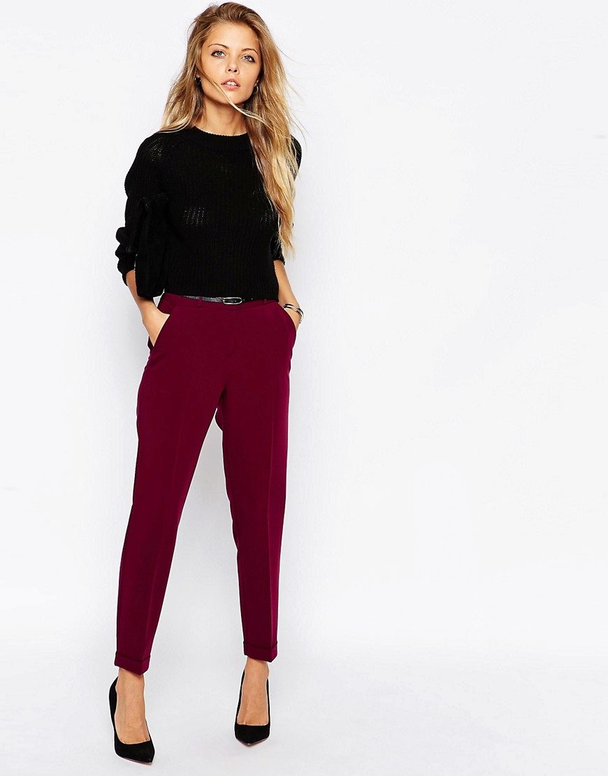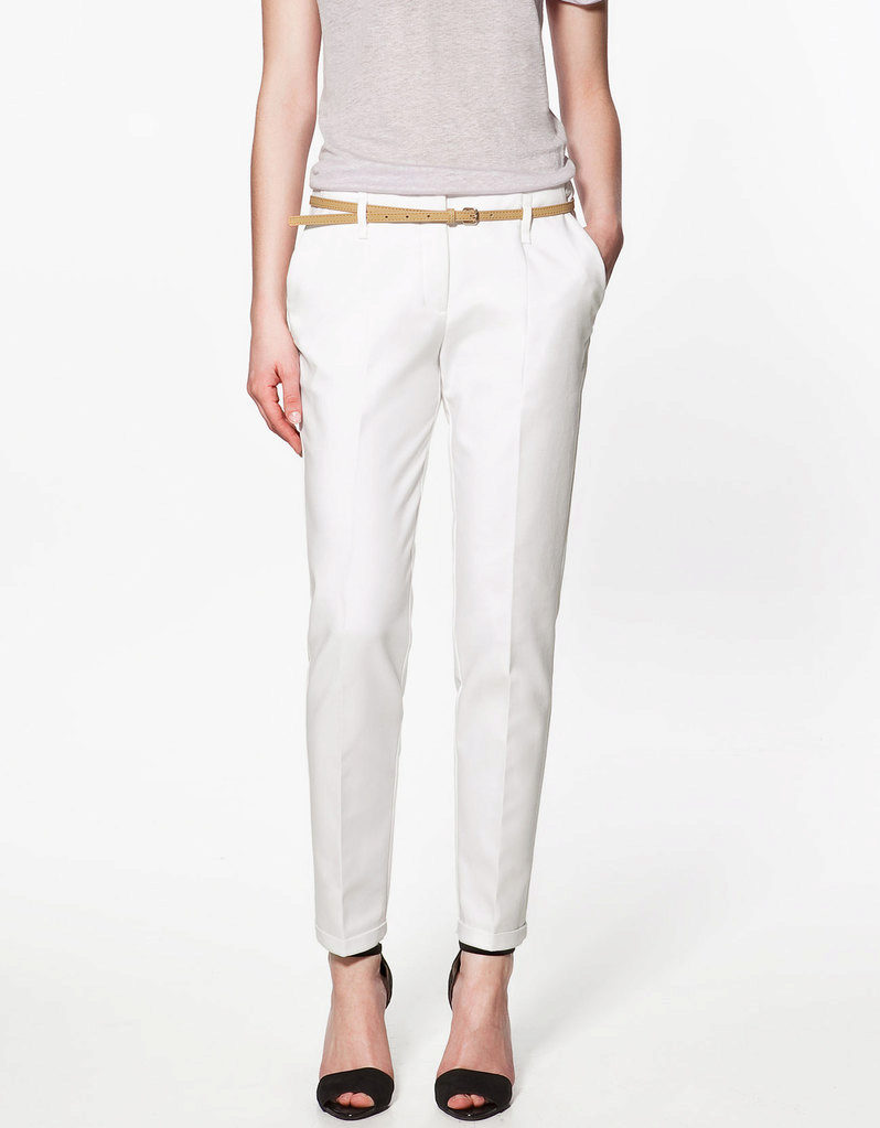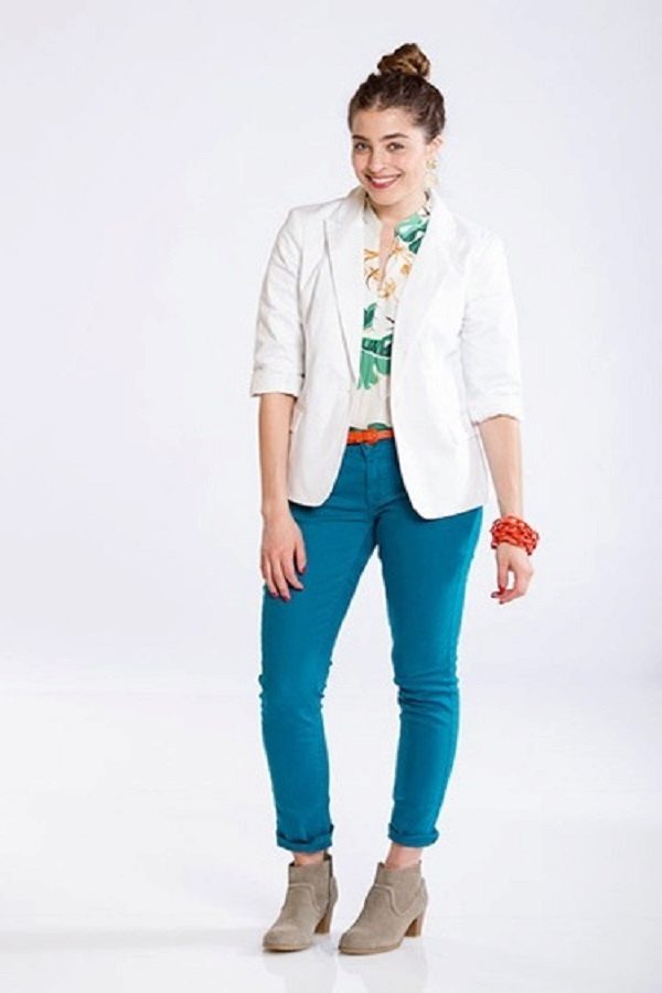 Khaki pants on any figure look amazing. Red shades are popular with slender ladies.