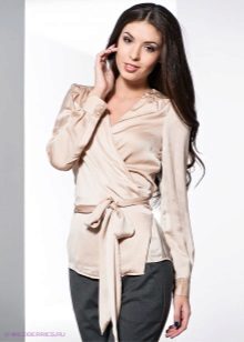 Brilliant satin and chic décor in the form of a bow on the belt will make the image unforgettable. And in combination with shoes with heels and light air top, the outfit will be incredibly feminine and elegant.