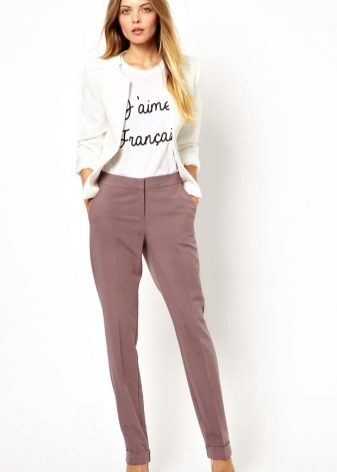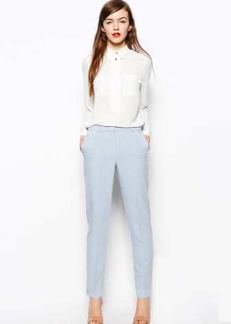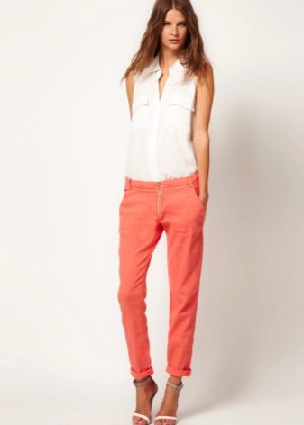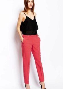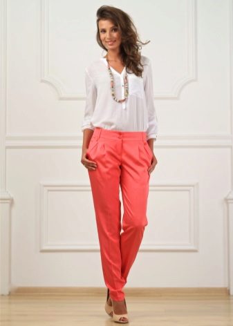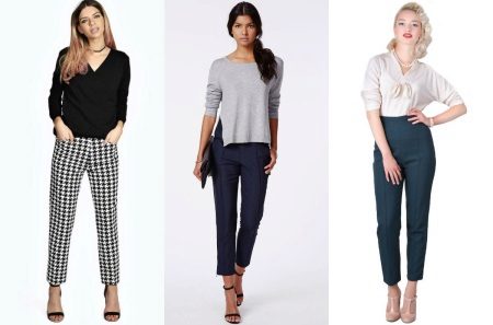 Pants-cigarettes (pipes, tubes) - narrow top to bottom pants, tight fitting legs. The main features of the style are a strict form and bright color; it is this combination that allows making a visually slimmer figure of any type.