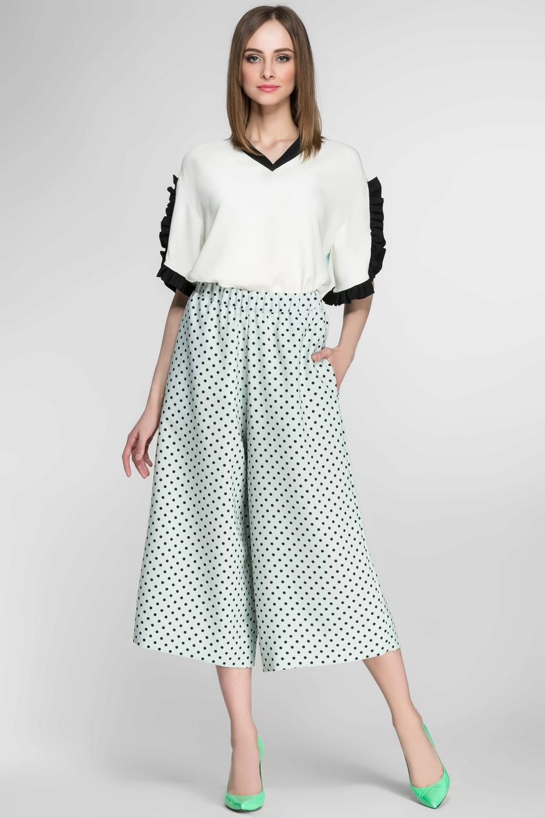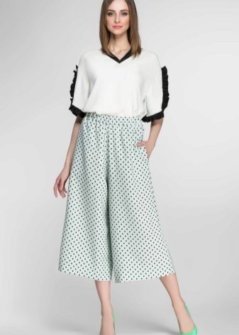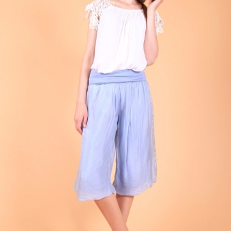 Airy feminine culottes will not leave anyone indifferent, since they look very stylish and elegant, resembling in appearance a classic business style.