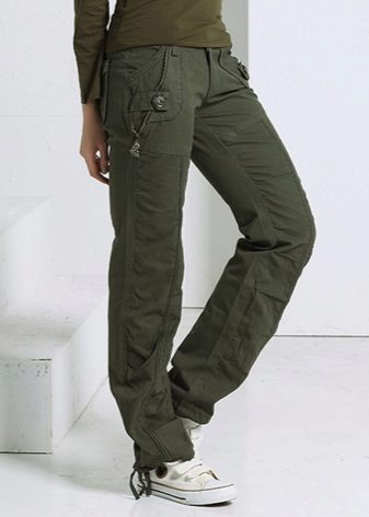 Cargo pants - comfortable trousers of a spacious cut from waterproof matter, with large side pockets and other decor. Popular colors - shades of blue, gray or khaki.