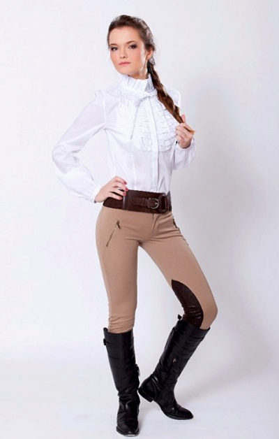 Jodhpurs (leggings) - narrow and tight trousers, with a stitch under the heel at the bottom with a loop.