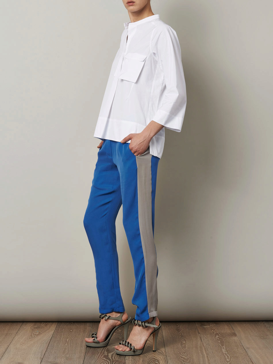 White color is considered quite relevant in this season, but for trousers it is not particularly practical. Black color, unlike white, is not so easily soiled. In addition, black is also good because it is suitable for all types of shapes. All shades of gray are also quite relevant today.
