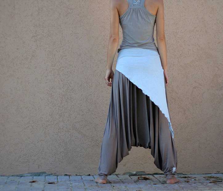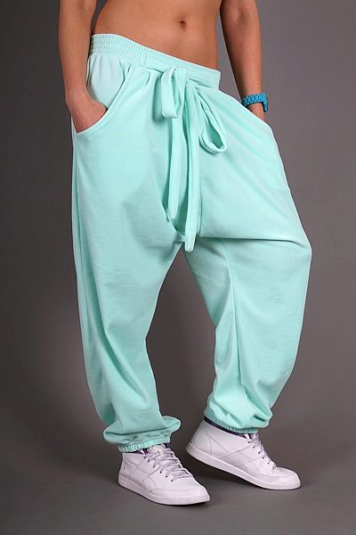 Afghani pants (harem, zouava, alladin, fuseau, Ali Baba) - Pants with a low step seam, reminiscent of traditional Afghan or Indian outfits, are a good substitute for training pants.