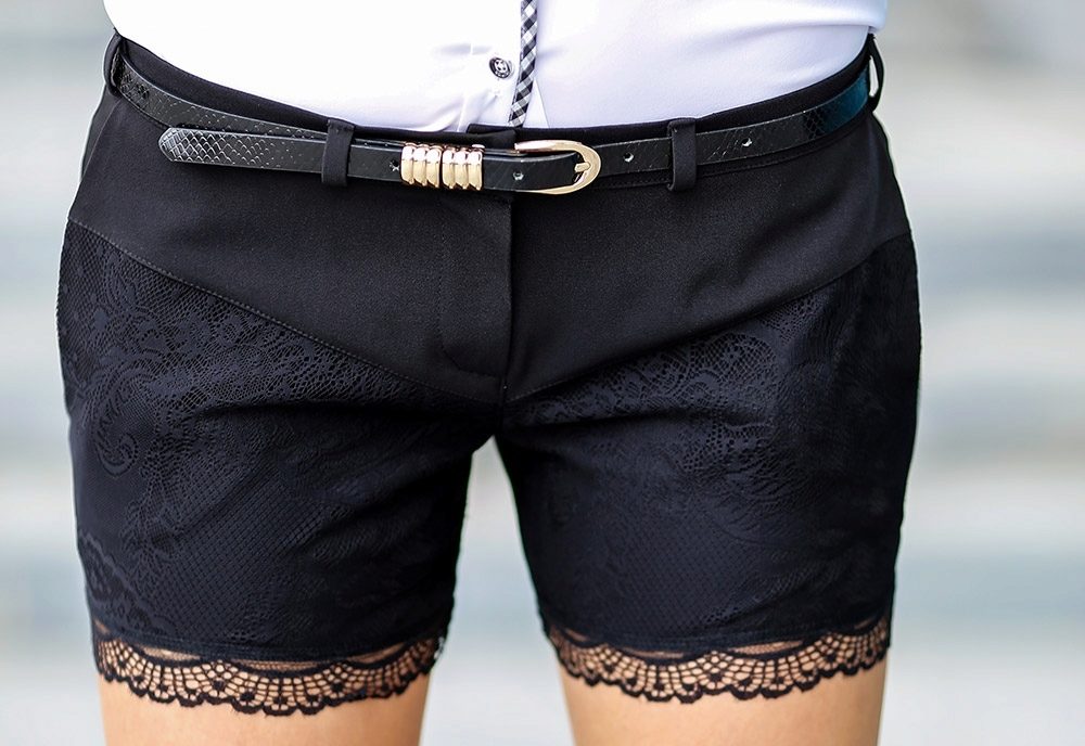Chic ensemble is obtained by combining a variety of models of the top with shorts with a high waist, but this option is suitable only for thin girls with beautiful hips.