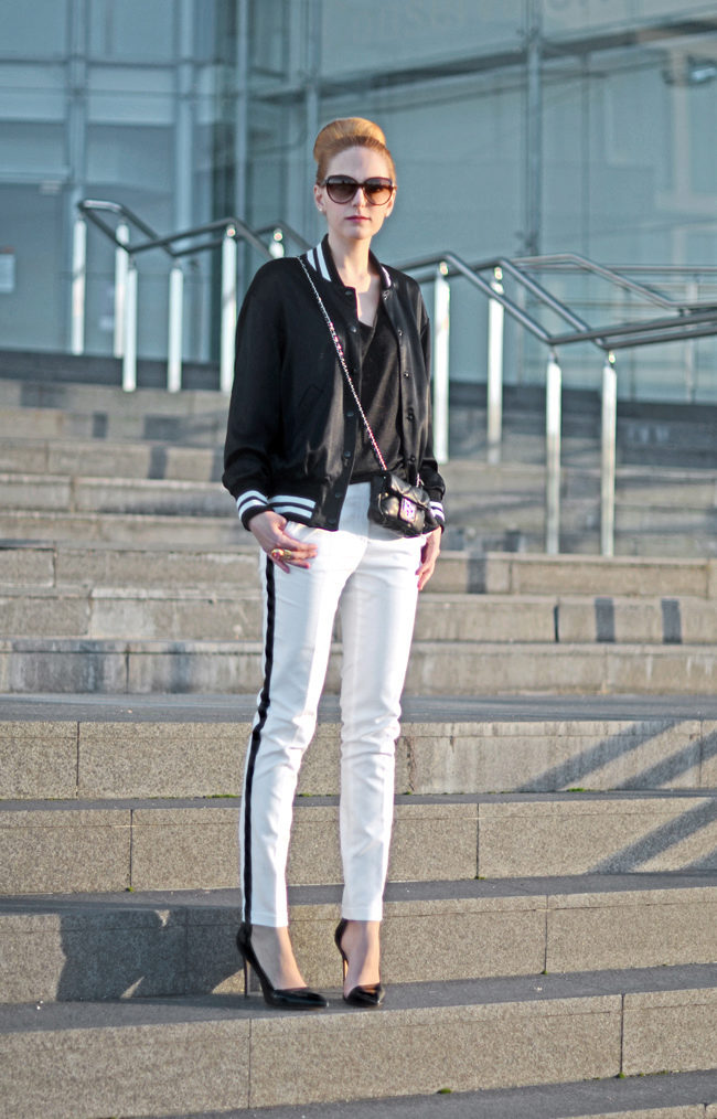 Pants with stripes - vertical stripes - from the outer sides of the pants.