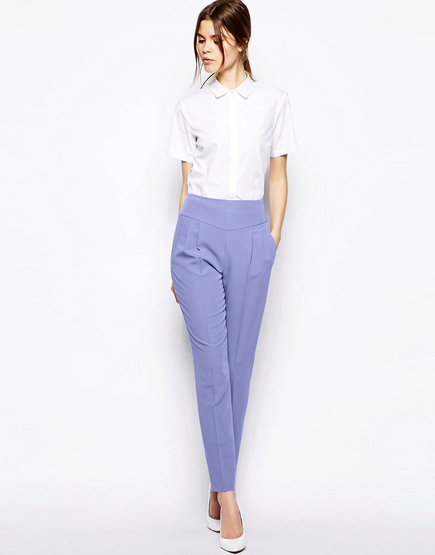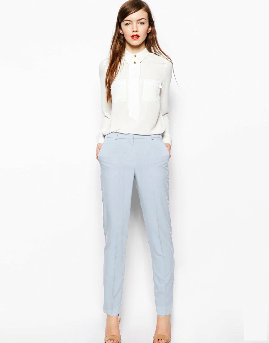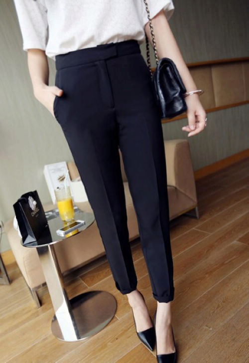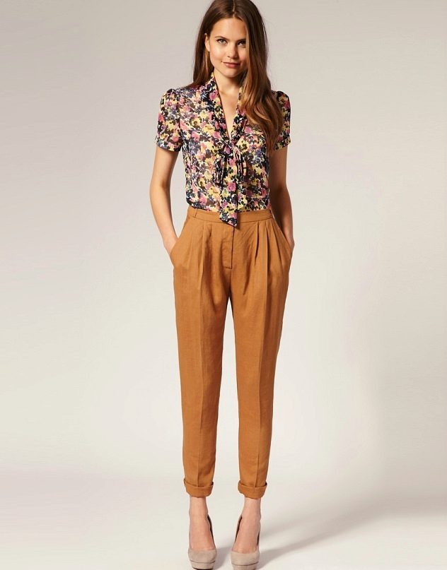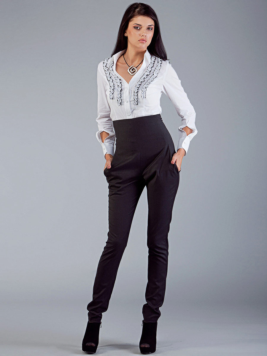 Young ladies with short legs and short stature will suit well with high-rise pants or a high waistline. They should avoid low-rise trousers, because low waist on the pants shortens the figure of their owner even more.