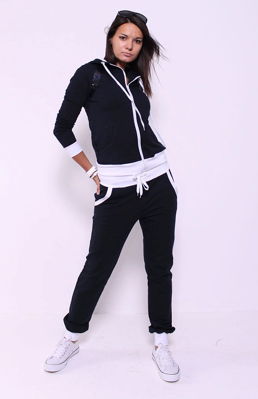 Urban-style trousers are easily recognizable by so-called “carefully thought-out carelessness. Basic trousers of this style are jeans, black narrow, all kinds of shorts. Women's sports-style pants are distinguished by a large number of overhead pockets, belts, slings, cuffs, buttons and eyelets.