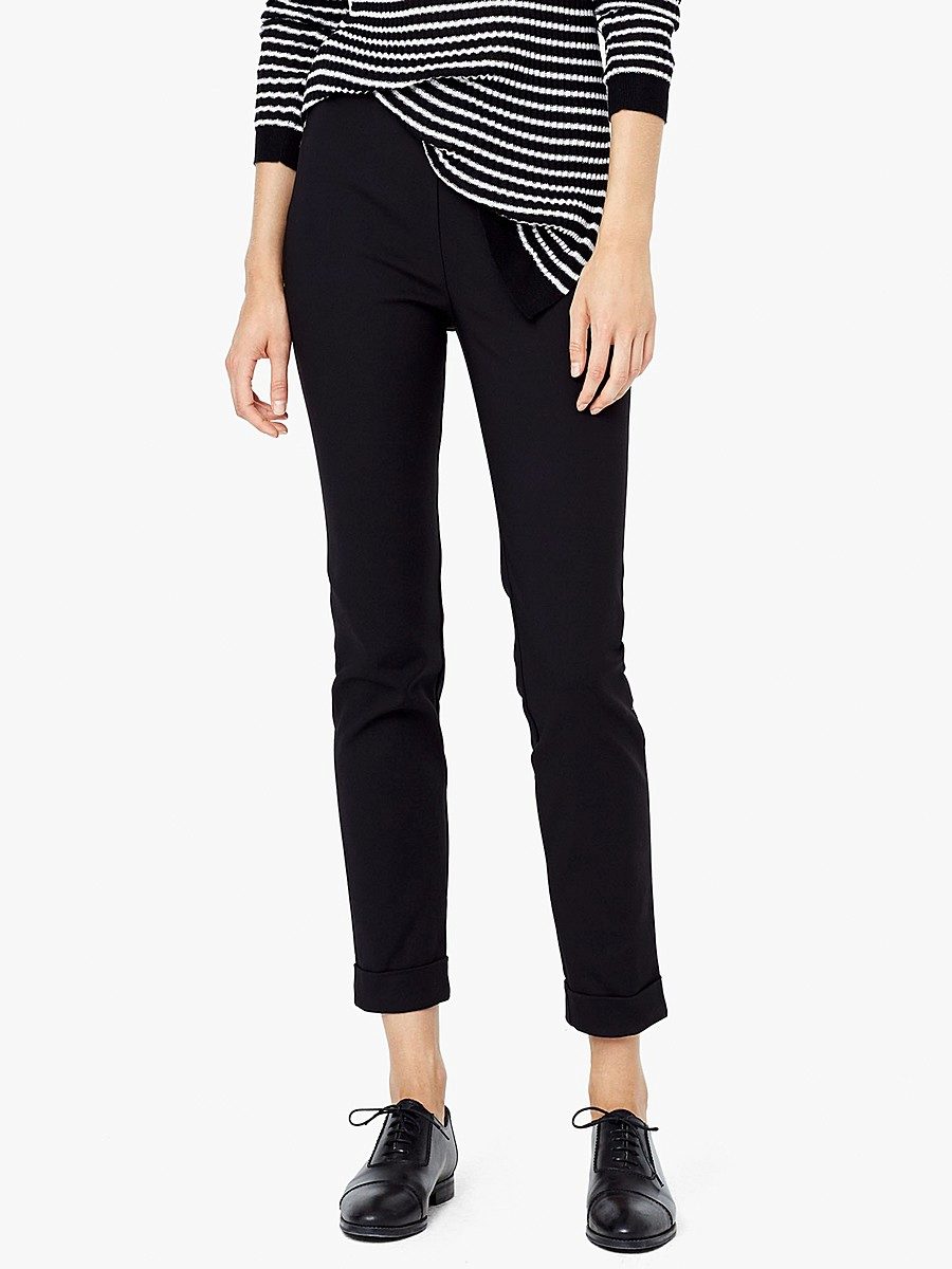 It is better to choose a medium density material with a low content of elastane. Pants of such material perfectly keep their shape, they do not crumple and do not stretch out on their knees.