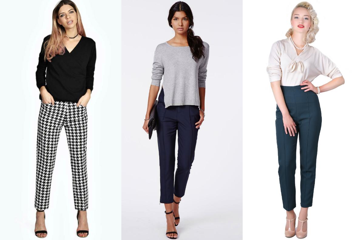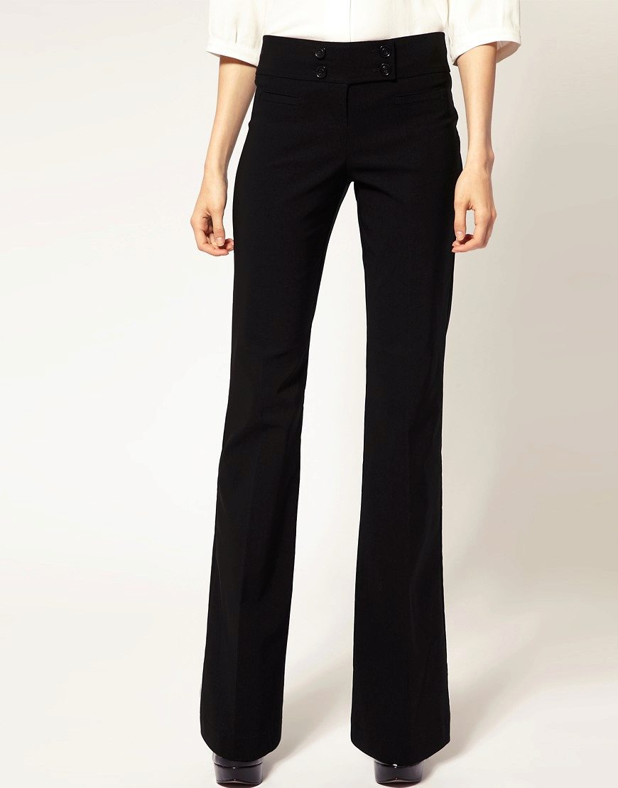 To look taller, it is advisable to wear straight, long pants, flared from the hip, as well as wide models. Tall ladies who want to look lower are recommended shortened styles, as well as narrowed models, bananas and riding breeches. If the legs are too short compared to the whole figure, then you should choose straight, wide and flared high-rise trousers.