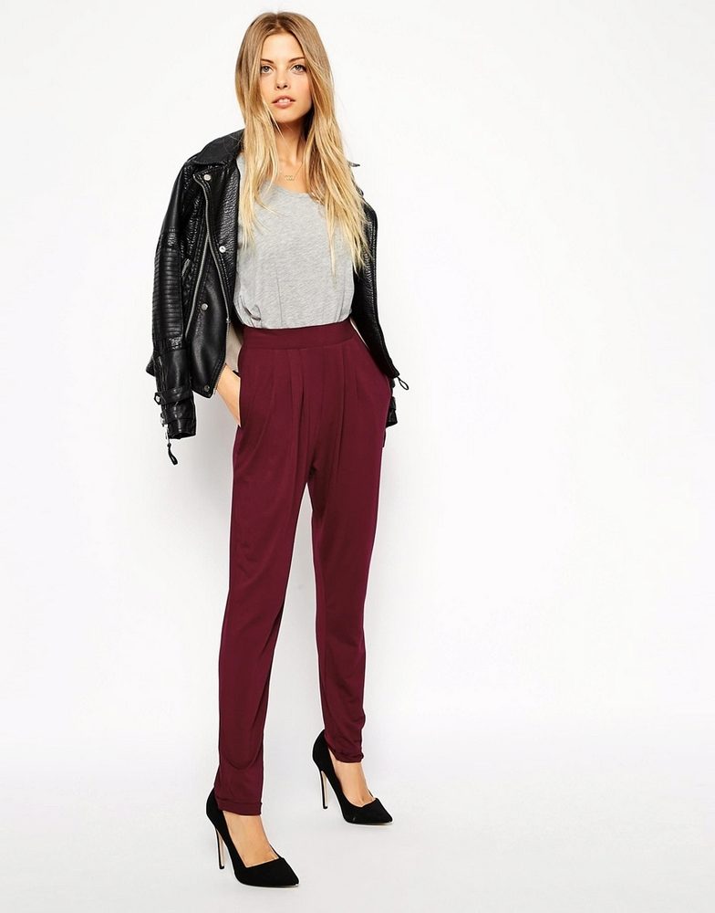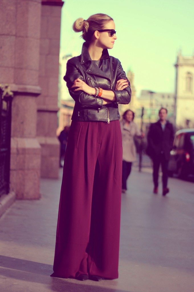 Fans of rock style like leather pants. Of course, you shouldn’t come to the office in such pants, but you shouldn’t forget about gathering with friends, rock festivals and such kind of events where they will fall into place. Now in fashion stores you can find leather pants of various textures and diverse shades.