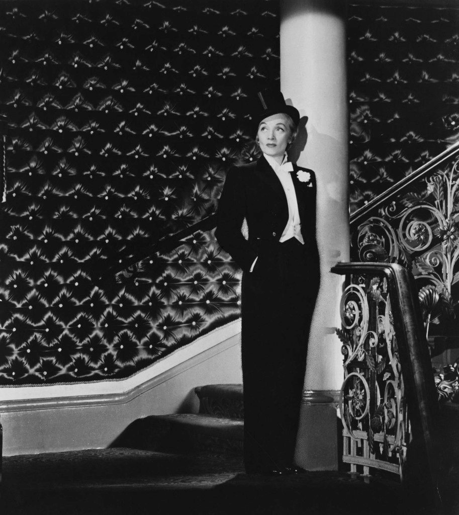 Citizens who were at the head of the feminist movement, and advocated for the equality of the sexes, in every way tried to borrow various items of men's wardrobe. Among them was the famous Marlene Dietrich, who wore men's trousers and a la garcon style suits.