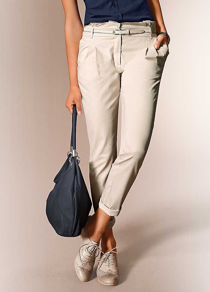 Natural fiber fabrics, such as cotton, breathe; in addition, they give the finished trousers a distinct shape and perfectly iron. But blended fabrics are more durable. Pants made of high-elastane matter are pleasantly felt on the body, but look perfect only on female models.