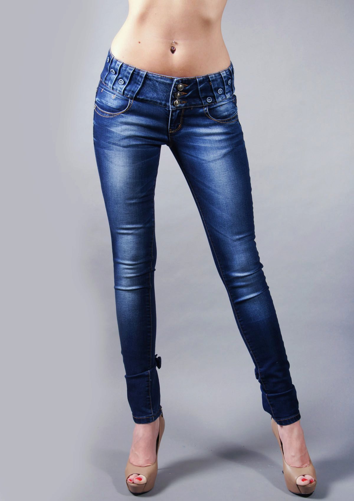 If you still want to wear trendy skinny, then you should choose those that have patch pockets or other details on the hips.