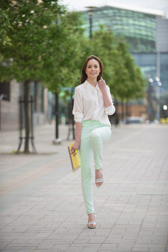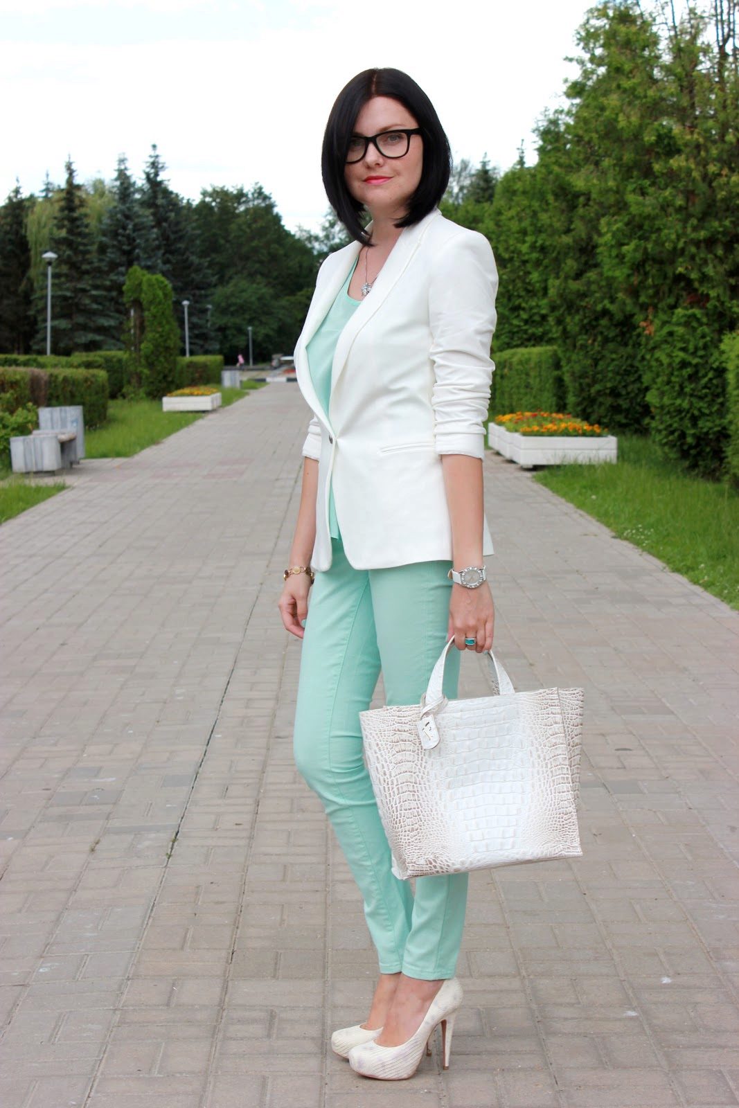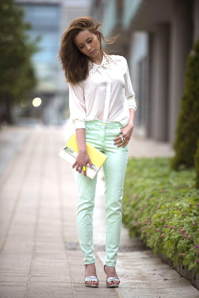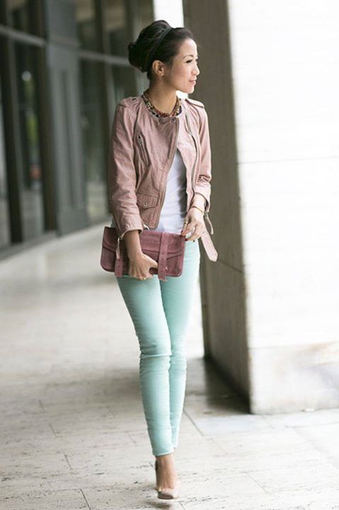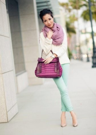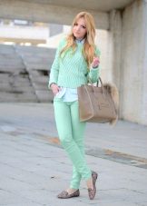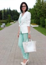 It should be noted separately sets in one color scale. For example, trousers of a saturated mint shade, and top of a light mint shade - menthol. Focus on accessories, shoes or clutch bag.