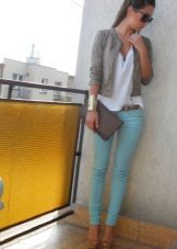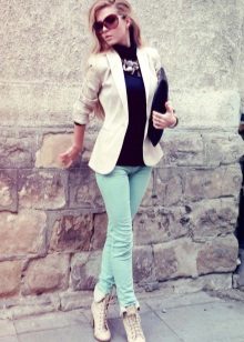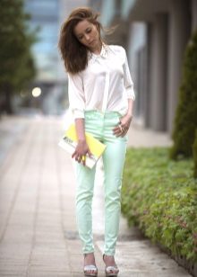 Mint models of tight-fitting trousers, such as skinny pants and pipes, are very popular. Images can be inspired by famous stars.