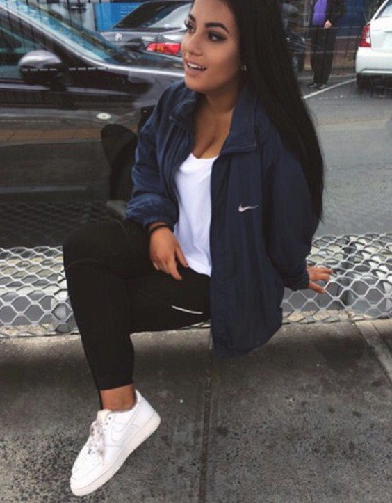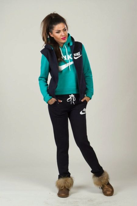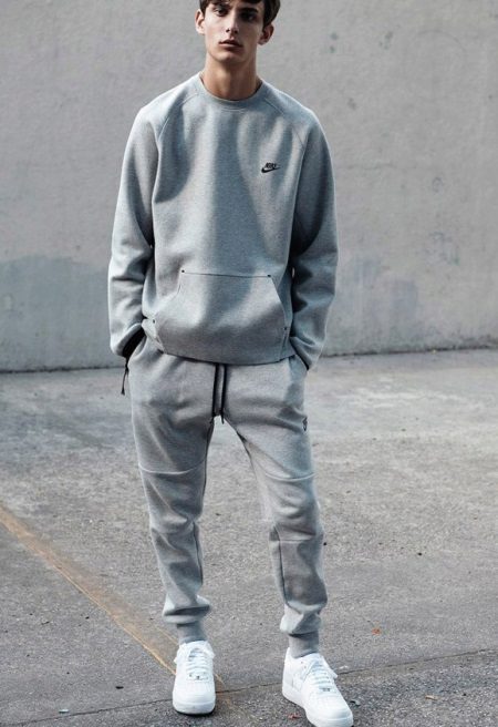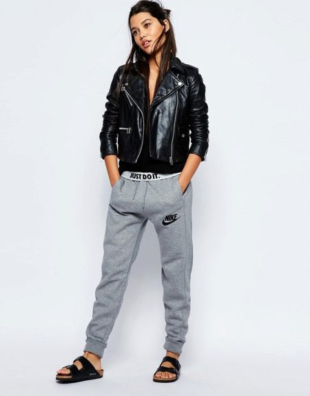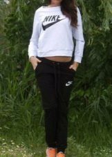 Nike sweatpants are amazingly combined not only with T-shirts and T-shirts, but also with actual hoodies, sweatshirts, sweaters, vests, sweatshirts and sweaters. In cool weather, you can wear a bomber jacket, an elongated cardigan or leather leather jacket.