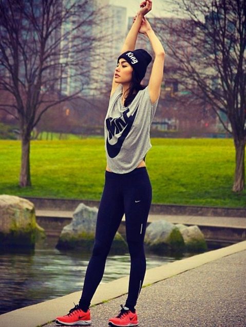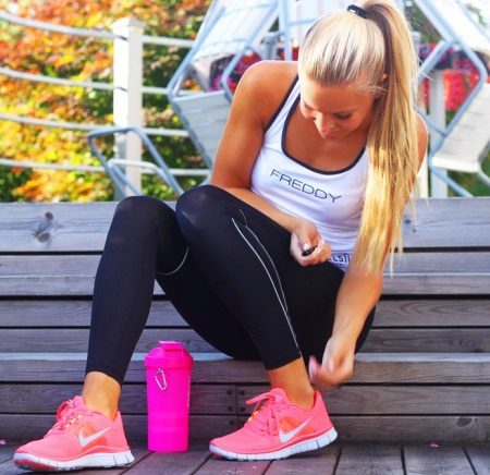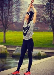 For fashionistas, all sorts of sports accessories are relevant - hair bands, headphones, watches, wristbands, knee pads, elbow pads. Nike offers a large selection of similar items to your taste and matching the chosen sport pants. In combination with tight sports pants, you can afford to wear leggings.