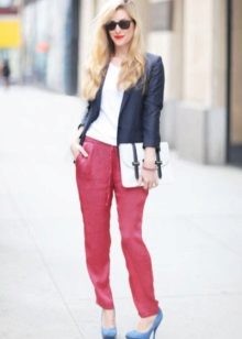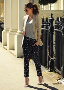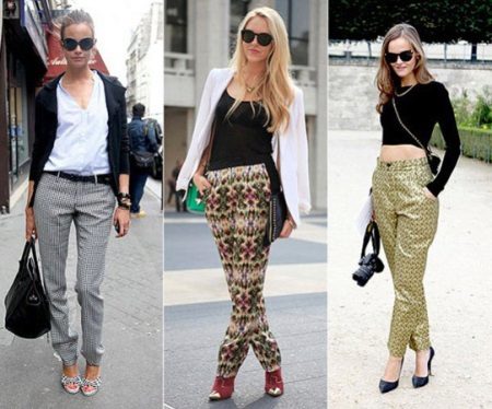 There are a lot of variants of this innovation in the fashion world. And, taking into account that the main fashionable trend of this year has been declared an incompatible combination, then everything will do, since you have put on “pajama” pants. This applies to textures, patterns and shoes.