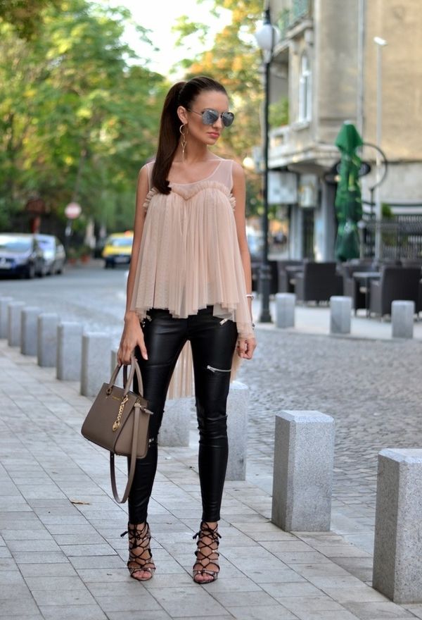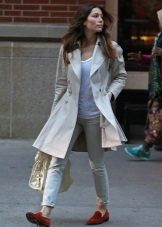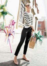 Fashionable tight ankle trousers are perfectly combined with light ballet flats, moccasins, slippers and loafers, but shoes or sandals with high heels, nevertheless, make the figure more slender and taut. It is necessary to avoid boots, boots and ankle boots, so that they do not mask an interesting length.