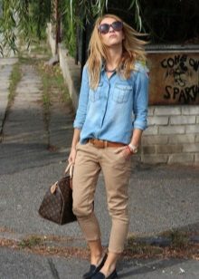 It is good to combine sports models of trousers ankle-length with sports t-shirts, t-shirts and sweatshirts. Cropped chinos are perfectly combined with hand-knitted sweaters and pullovers, as well as with T-shirts with a pattern.
