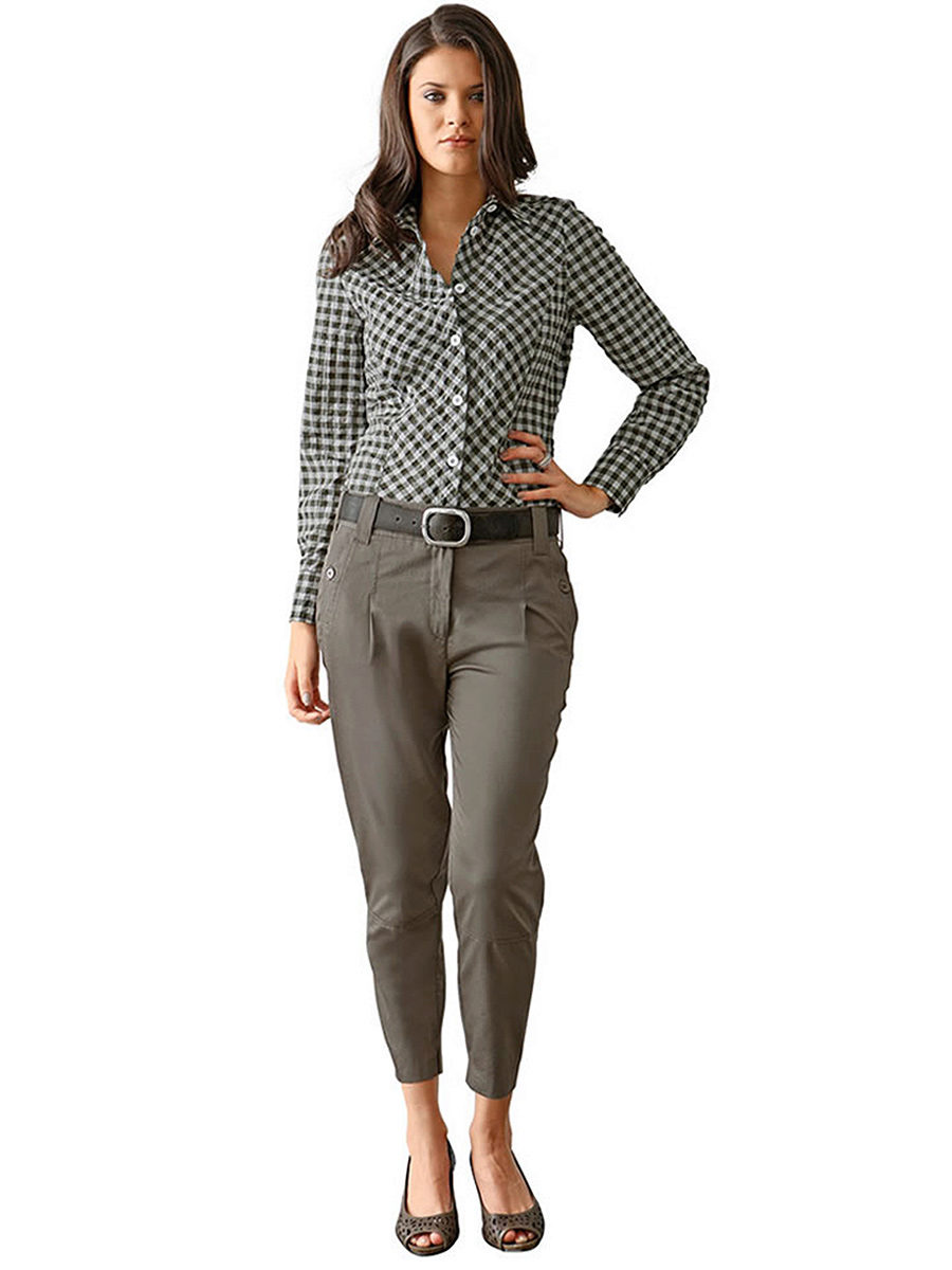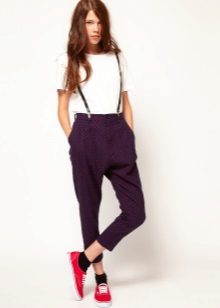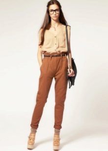 Halifah - these are narrow pants at the bottom, but rather wide at the hips. At the waist there are many folds that gently fall down. Such trousers inside usually have pockets, and they are worn, as a rule, with a narrow strap. This style of narrowed trousers is suitable for ladies with wide hips, as their fullness is well hidden in the folds.