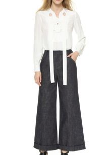 Narrow bottom, but wide-legged trousers “breeches”, which have many folds at the waist, suit ladies with wide hips, as their fullness can be successfully disguised in the folds of trousers.