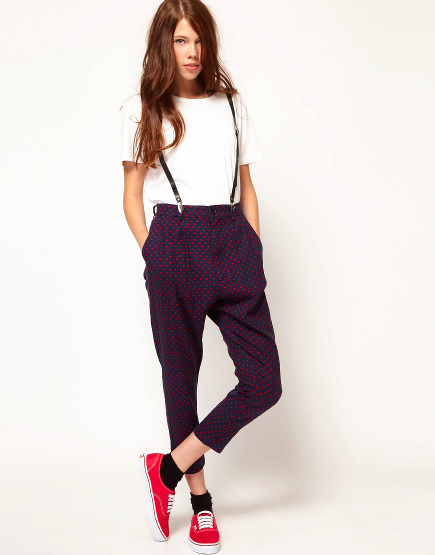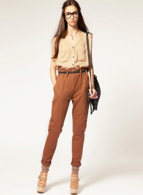 Gaucho trousers. This model resembles cropped wide trousers. These pants are distinguished by a wide belt and gently flared cut from the hip line. Can only be recommended to young ladies with long legs and a good sense of style.