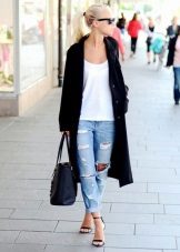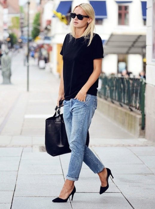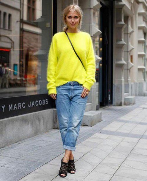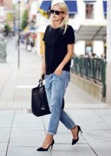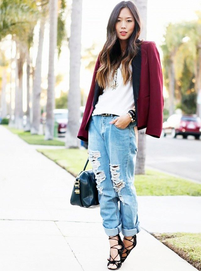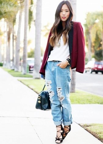 Boyfriend wide jeans should be worn in tandem with a graceful and attractive jacket with a slim fit or sweatshirt. Such an ensemble will help to create an unusual image, and it does not look sloppy.